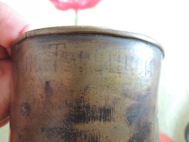 Продолжаем тему окопного творчества солдат Великой Войны, есть у меня в коллекции большая латунная кружка с истертой гравировкой "В память Турецкой войны 1914 - 1917гг." По ходу Русский солдат и вероятней всего казак всю ПМВойну провел на Кавказском фронте, и все происходящее во круг называл по старинке Турецкой войной!