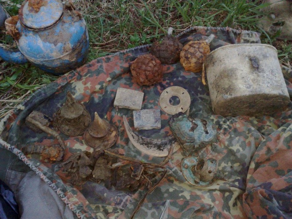 Апрель.25 пряга в этом сезоне далась нелегко,прогноз обещал небольшой мокрый снег с дождем,что особо не пугает.Сюрпризы погоды начались еще по дороге,постепенно весна сменялась быстро наступаещей зимой.По дороге попали в снежный вихрь с радугой,фото не передать,надо такое видить глазами в живую,светит солнце,радуга и стена снега которая внезапно начинается и кончается.Правило простое,на полдороге не останавливаются,начали подьем при слабеньком снежке и сантиметре снега,прикол в том ,что прогноз обманул,снег постепенно перешел в метель,и к шести вечера слой снега достиг 20 см.SE отличные аппараты,и при таком слое снега хорошо тягают пряжки из земли,главное что б подфартило на них наткнутся.За день раз двадцать сьехал на заднице по склонах,резиновые сапоги не наилучшая обувь для снега в горах.Общее фото не сделали,все грязные и мокрые,камрады добавят фото свох находок.Спустились вниз,а внизу весна,контраст поразительный .