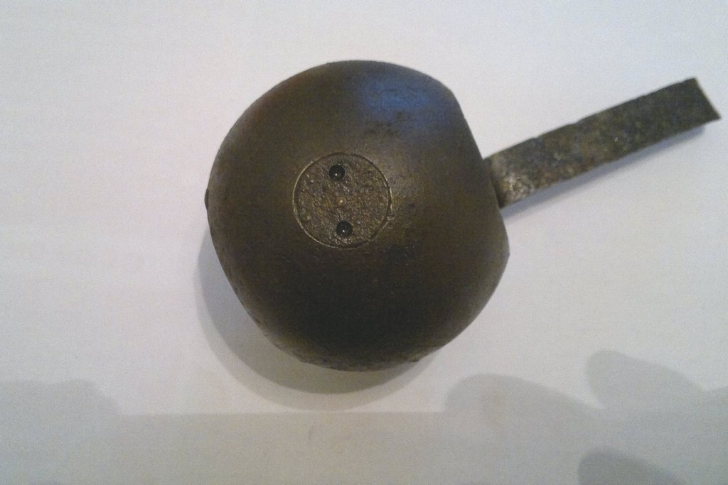 Австрийская Kugelrohrhandgranate,из за простоты конструкции одна из самых массовых гранат ПМВ,ручка картон,всередине шрапнель,часто залита всередине просто бетоном.