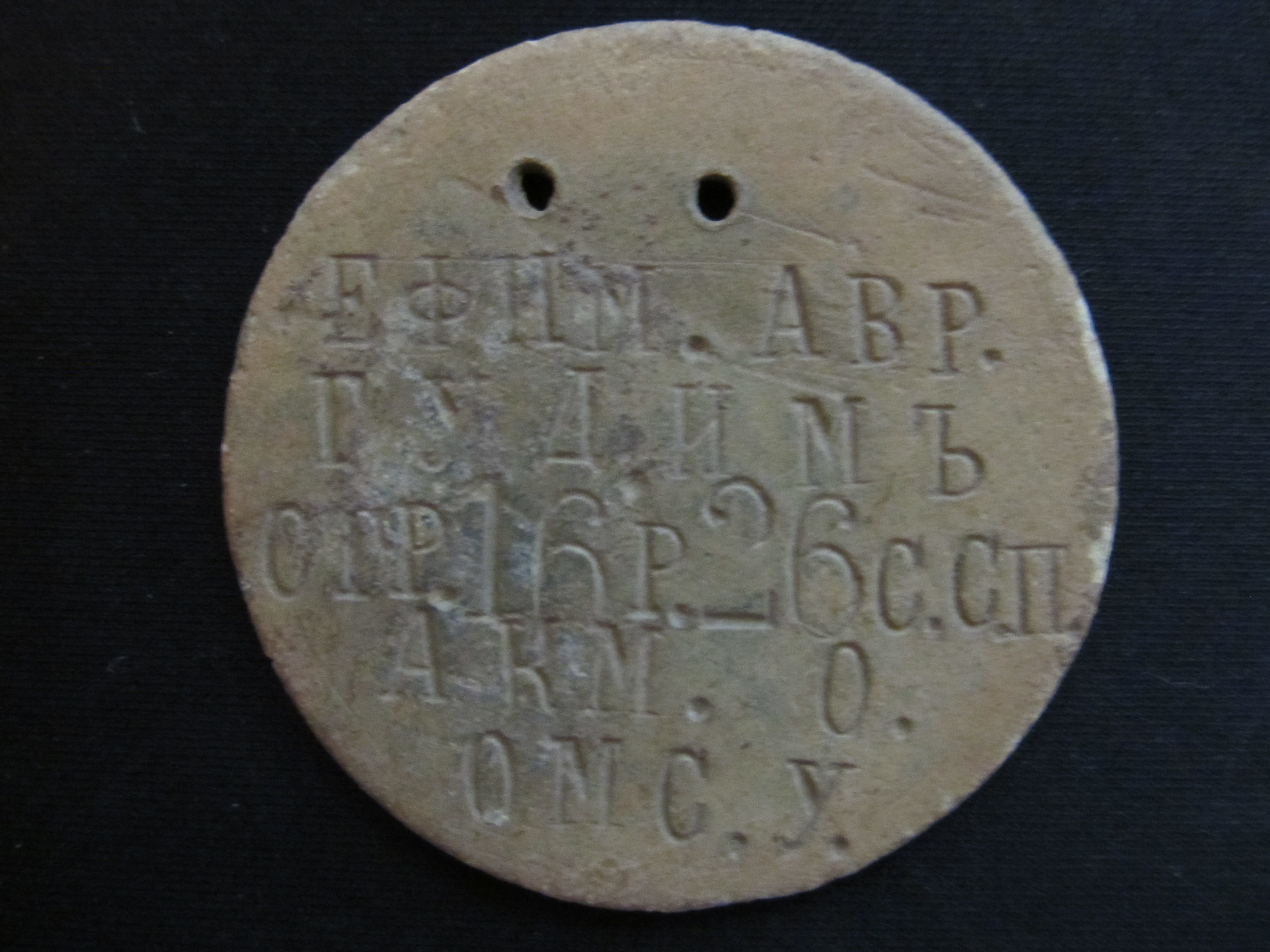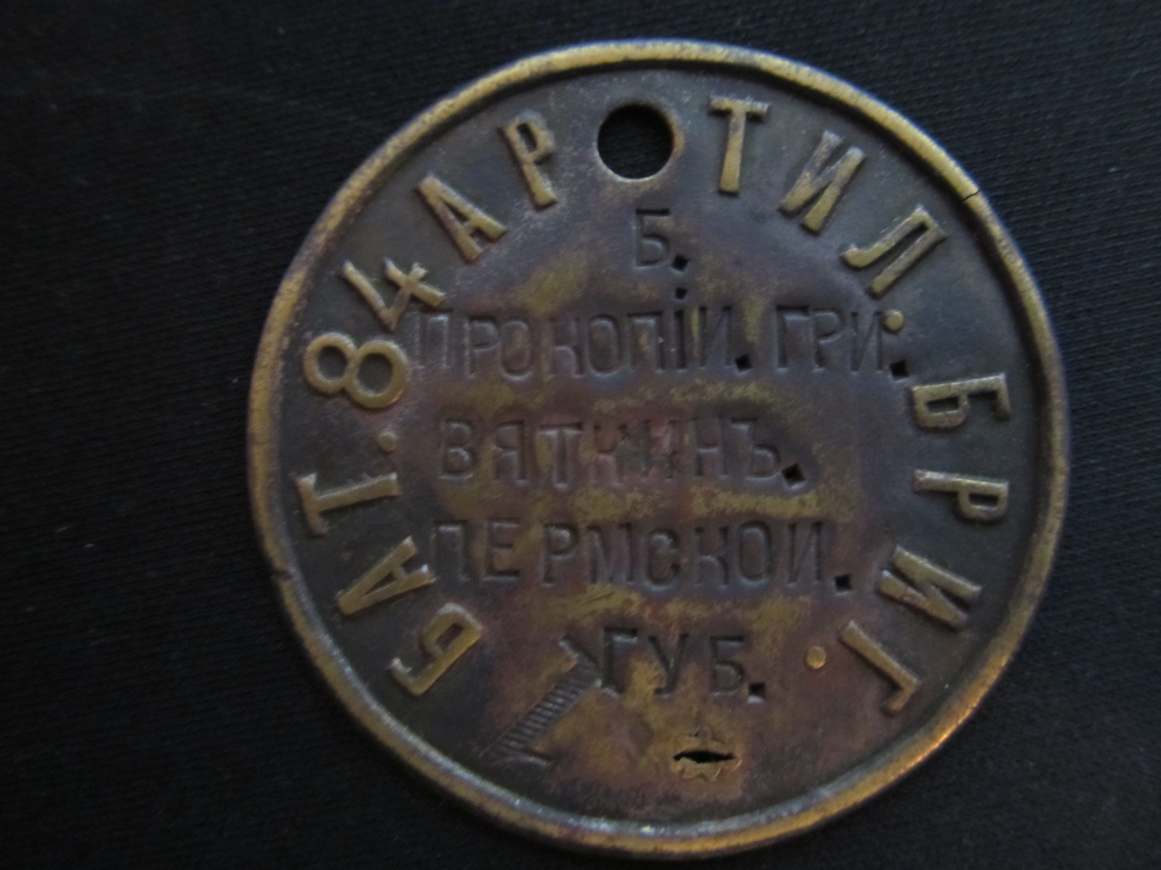 Фрог как обещал вот образец "самодельного" жетона РИА, (а может и не самодельного) возможно в каждой отдельной части командование решало подобные вопросы самостоятельно!CrazyFrog писал(а):16й год. К наступлению всё же готовились. Даже жетоны на немецкий манер делали. "Спецы" с Пуговицы не хотят этого признавать, однако по тем местам не один раз попадались русские жетоны не только с номером части, но и с полными личными данными на солдата. На останках они, конечно, вряд ли сохранятся - агрессивная среда уничтожает цинк. На лагерях находил.