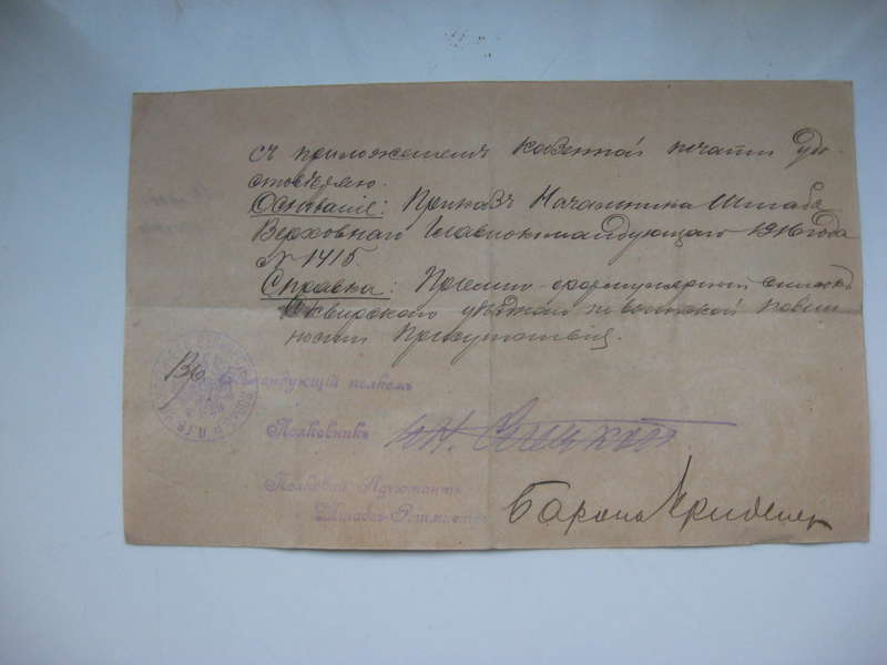Предлагаю выставлять в этой теме любые документы РИА на время ПМВ.