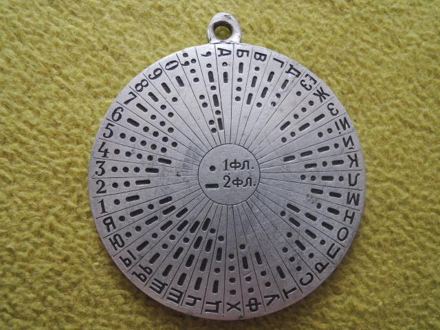 На одном из форумов проходил подобный жетон, причем, там кодировка не соответствовала классической азбуке Морзе. И обратка была другая.