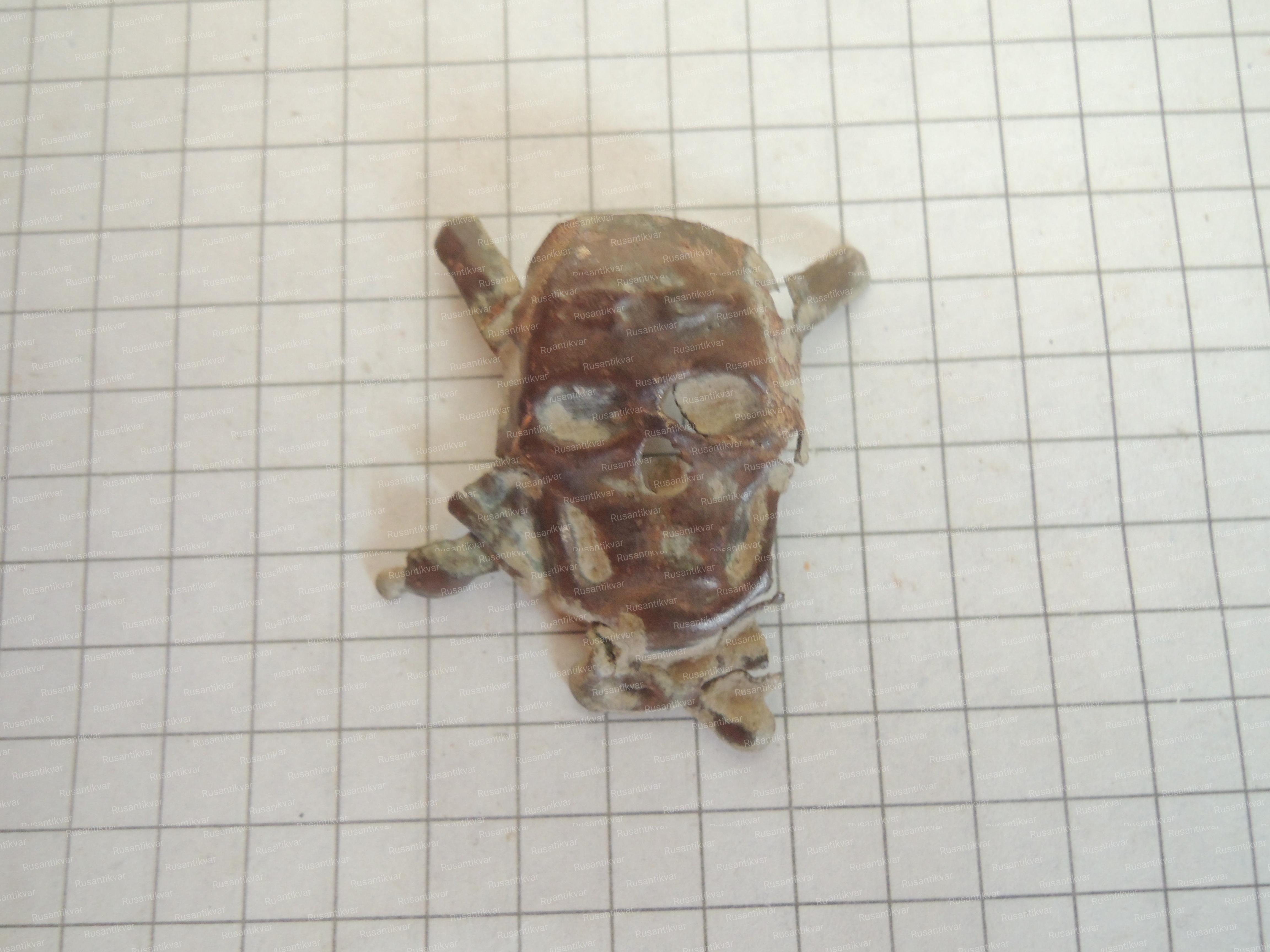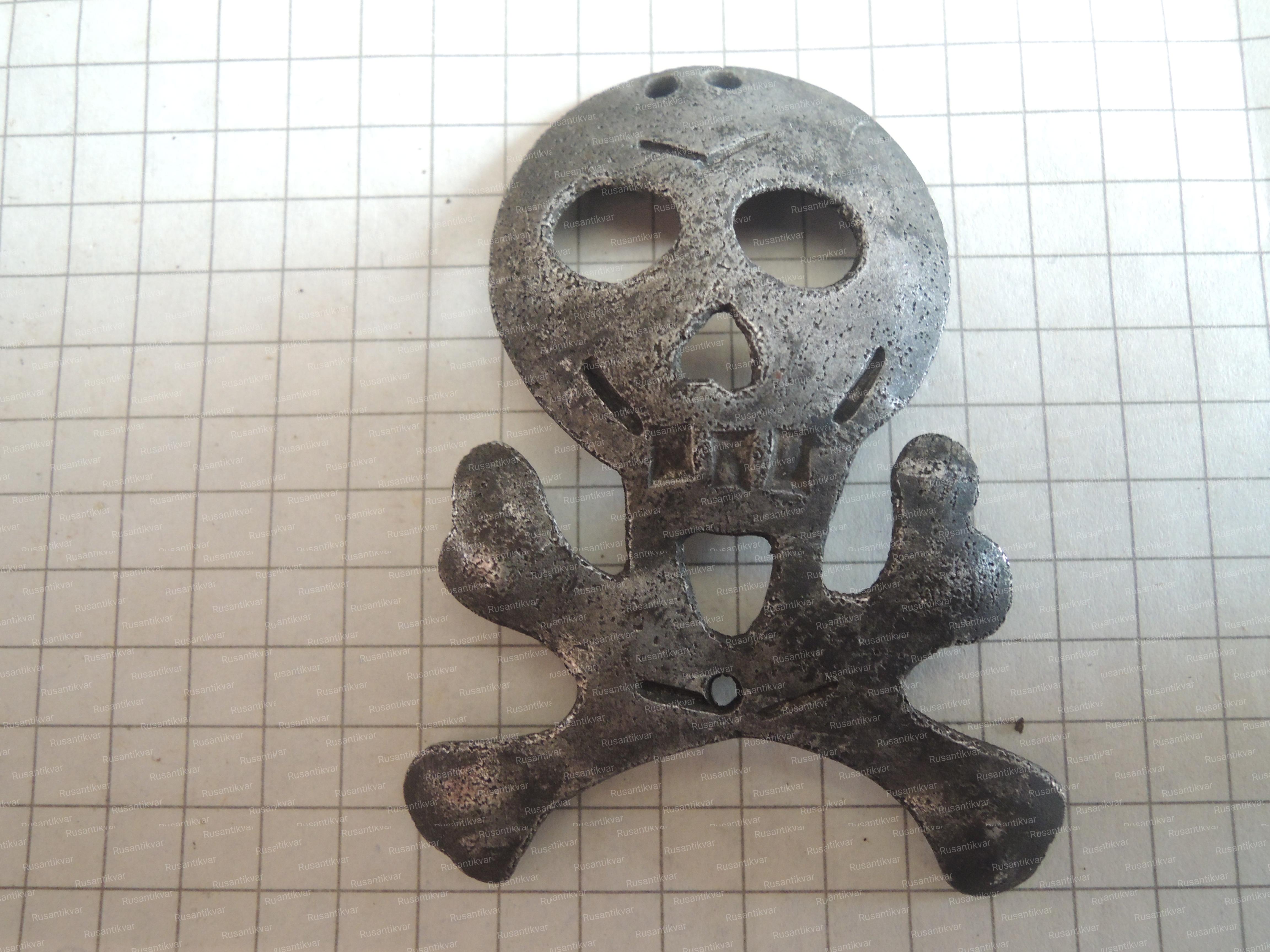 Пополнение из Крыма, р-он Красноперекопска, еще один вариант Корниловской кокарды, череп в венке, перекрещенные мечи и маленькие скрещенные кости, не частое исполнение!