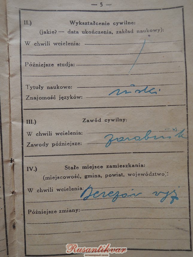 Большая просьба к коллегам знающим Польский помогите перевести военную книжку!? что там хоть прописано, как звали этого пана!? сам я Польский не знаю.... :(