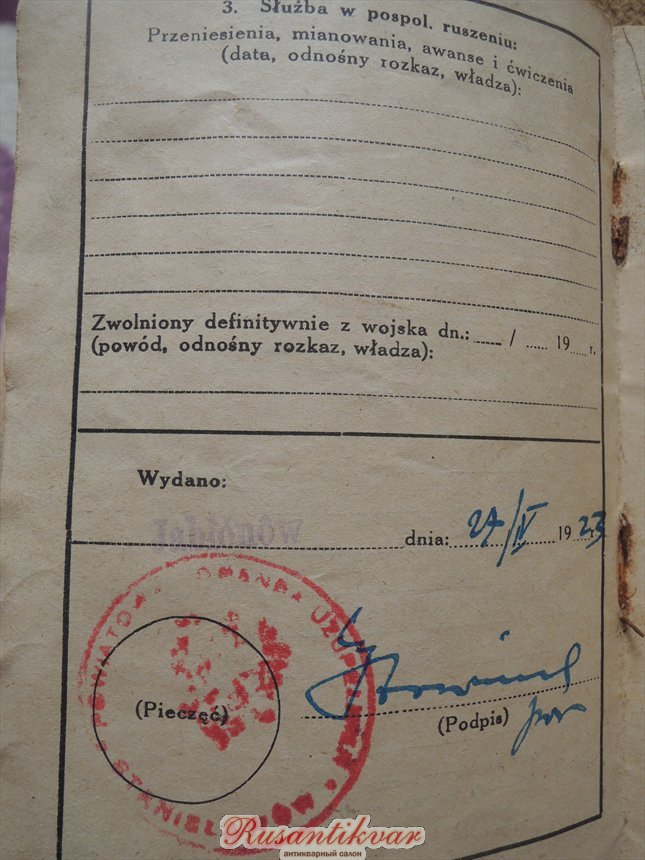 Данный пан начинал службу в Австрийской армии, судя по фото где он раненый в Австрийской униформе и наградами повоевал нормально, после 1918года записался в молодую Польскую армию о чем говорит его Польская военная книжка, демобилизовался этот пан только в 1923году т.е. по логике он воевал в советско польской войне 1920года.