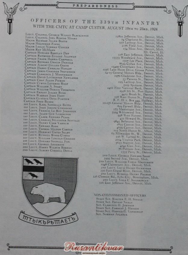 339-й пехотный существует и поныне, гордо носит имя "Поялрных медведей", а на погонах полковые знаки нью-йоркской фирмы Майер, которые выглядят сегодня вот так.
