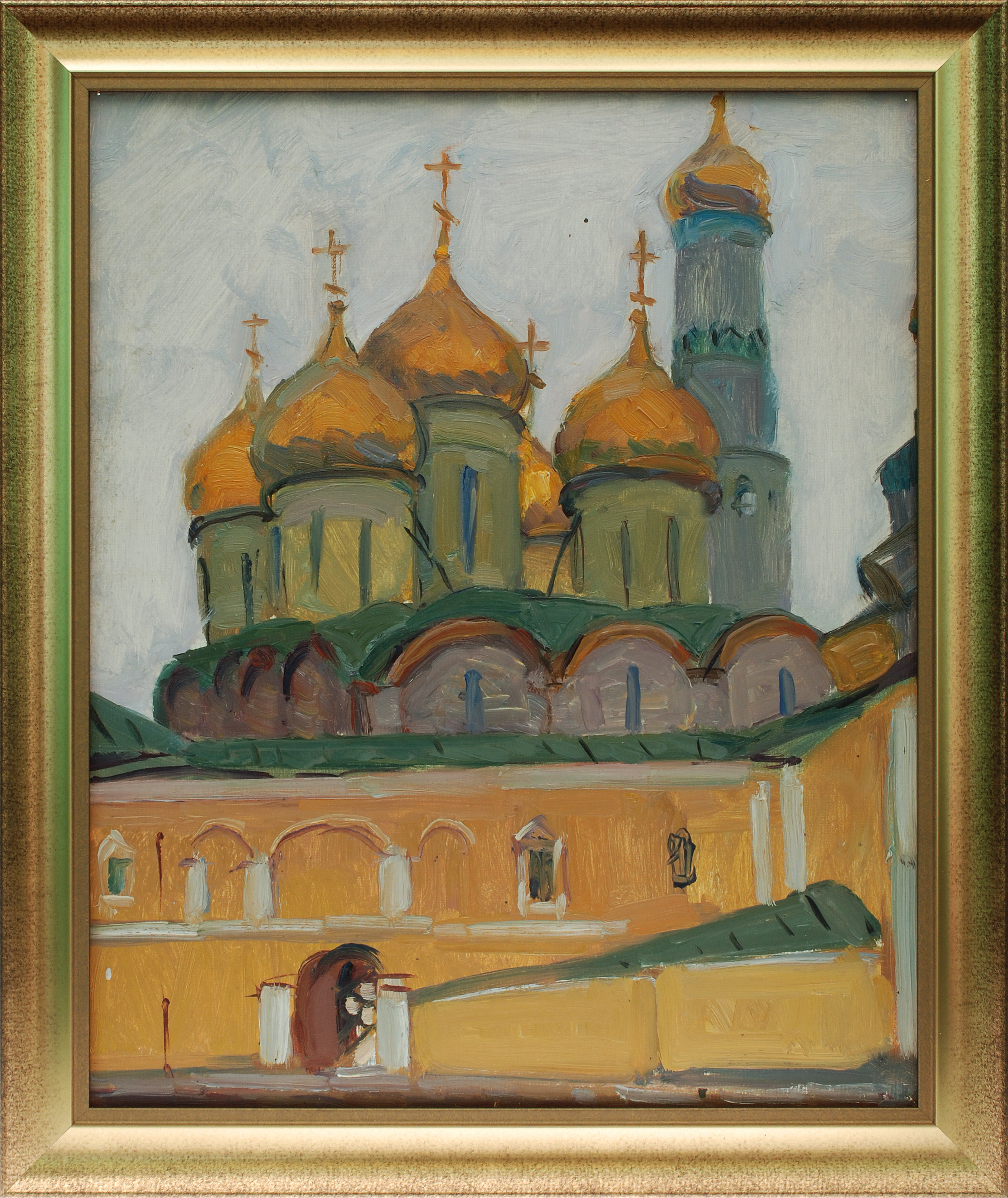 На полотне, в кисти Евгения Расторгуева сохранился образ храма, положенного в жертву современного Дворца.