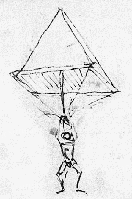 А первый технический проект парашюта принадлежит Леонардо да Винчи (конец XV века) .