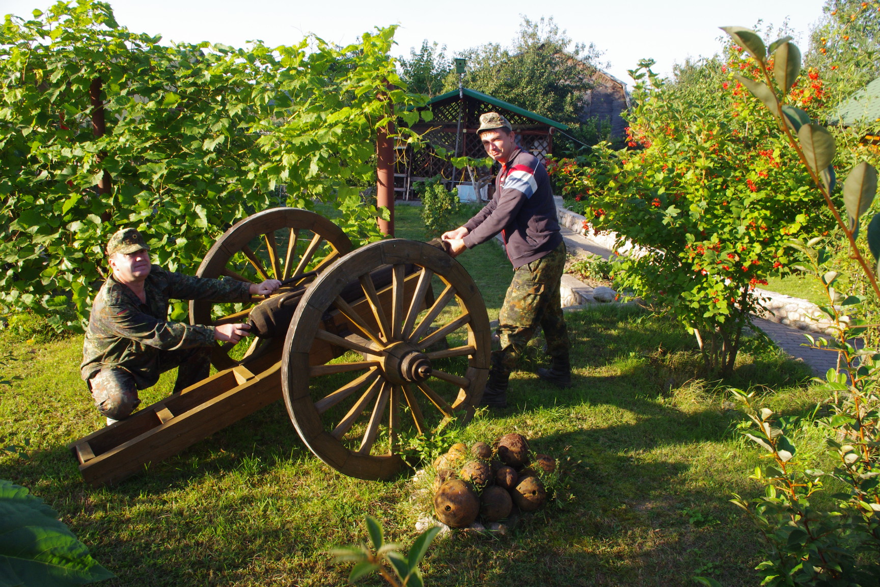 Дачный дизайн на тему 1812го года! Вот такая пушка на даче наших знакомых, "альпийская горка" из ядер.