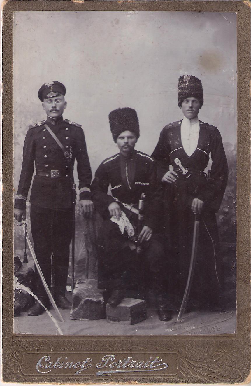 Гренадер и казаки Полтавского кубанского казачьего полка.