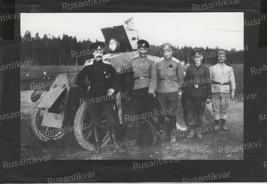 Прапорщик Улятовский у бронеавтомобиля, построенного по его проекту.