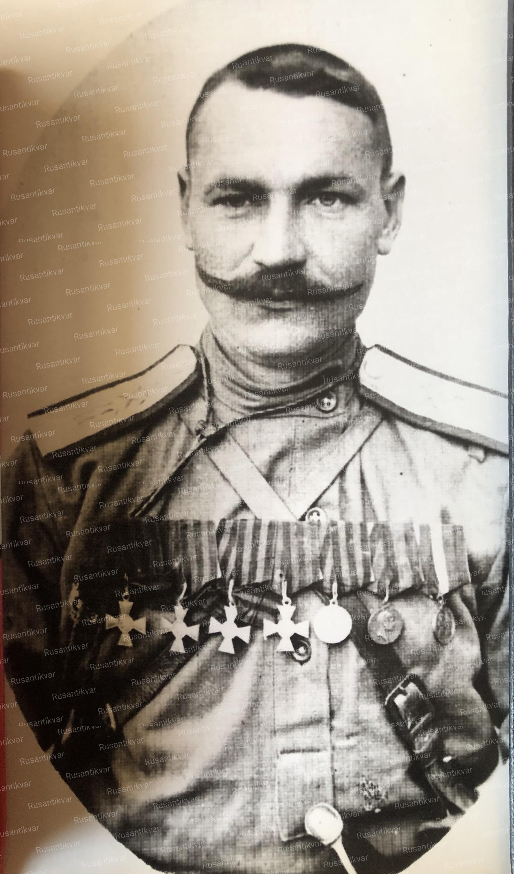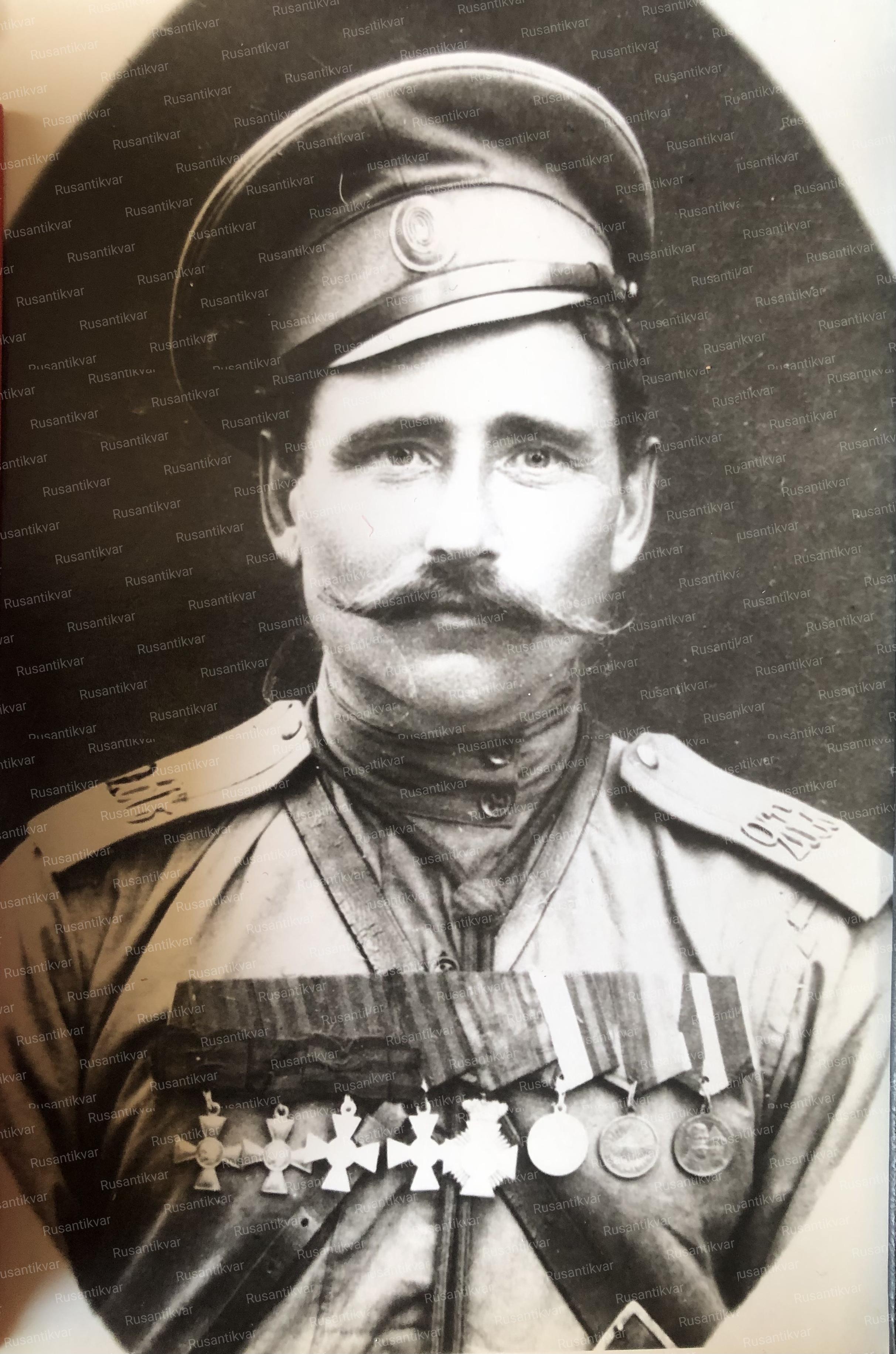 Прапорщик кавалер солдатского Георгиевского креста и Георгиевской медали 4-х степеней со знаком об окончании Владимирского военного училища в С.-Петербурге.