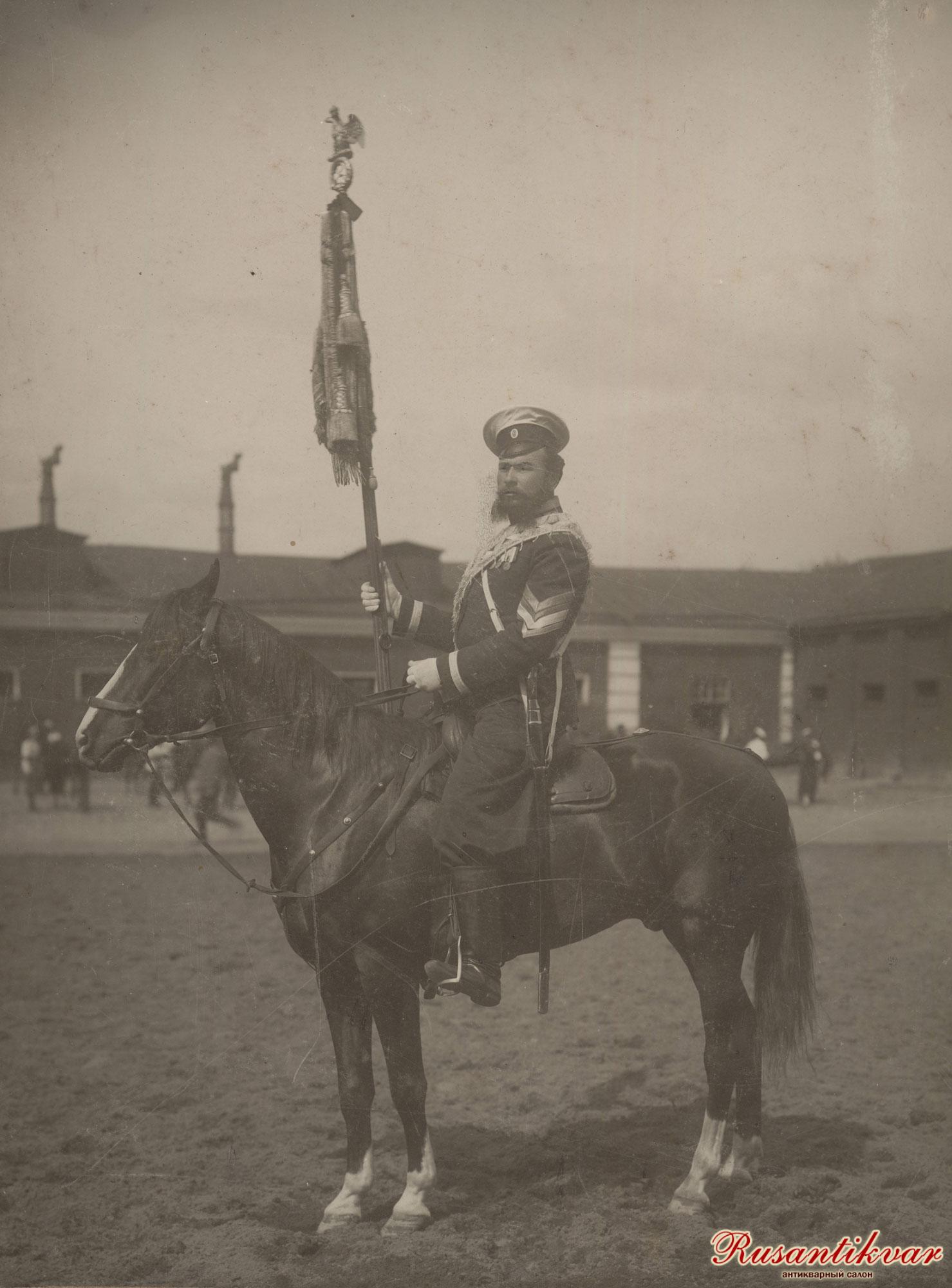 Фотография гвардейского конного казака с Георгиевским штандартом. С-Петербург, начало XX в.