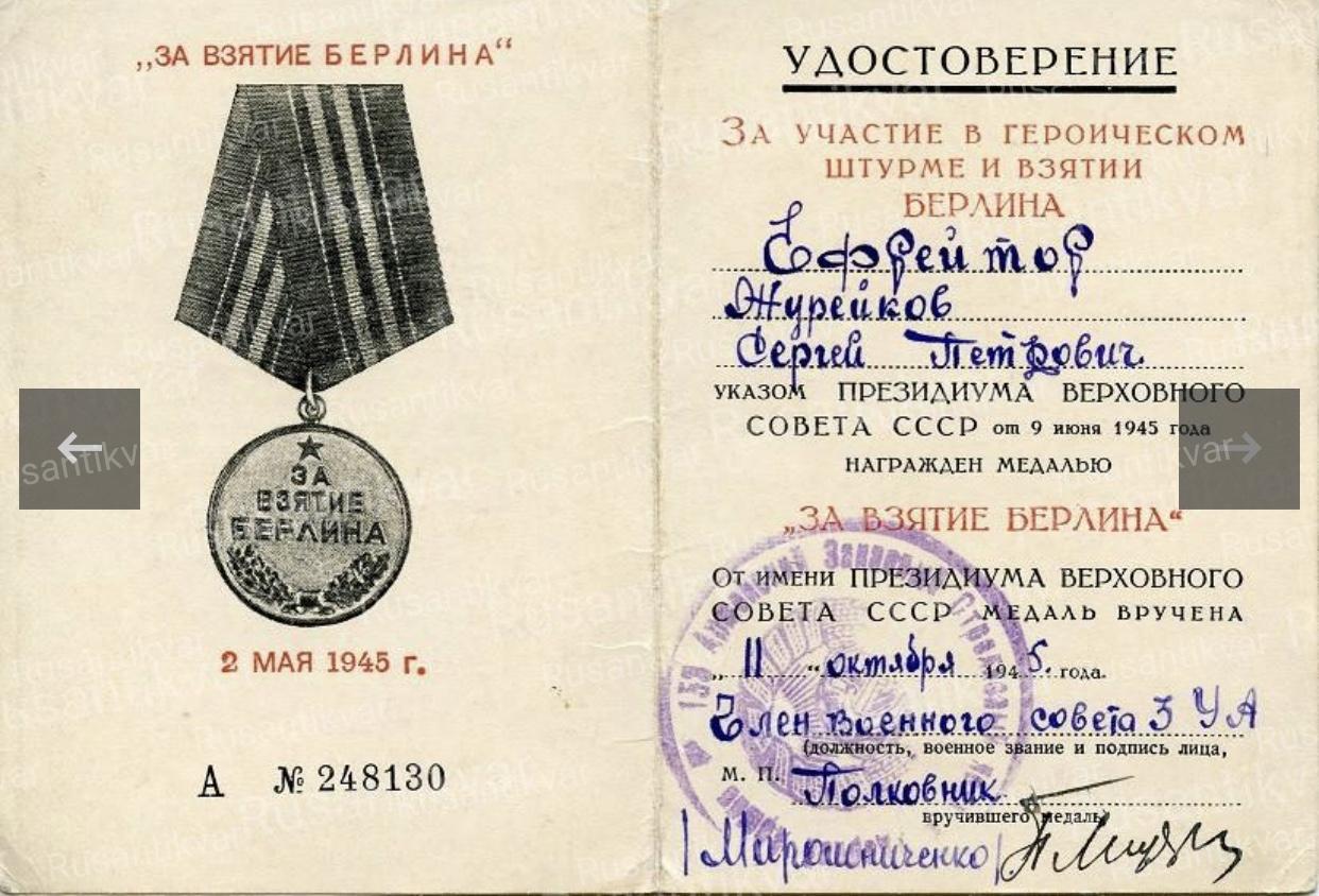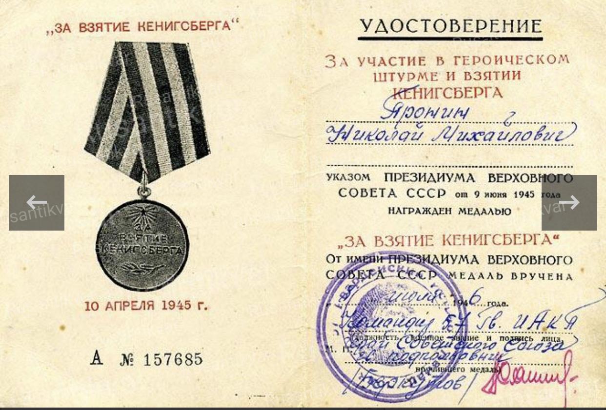 11. Удостоверение к медали «За взятие Кенигсберга»;