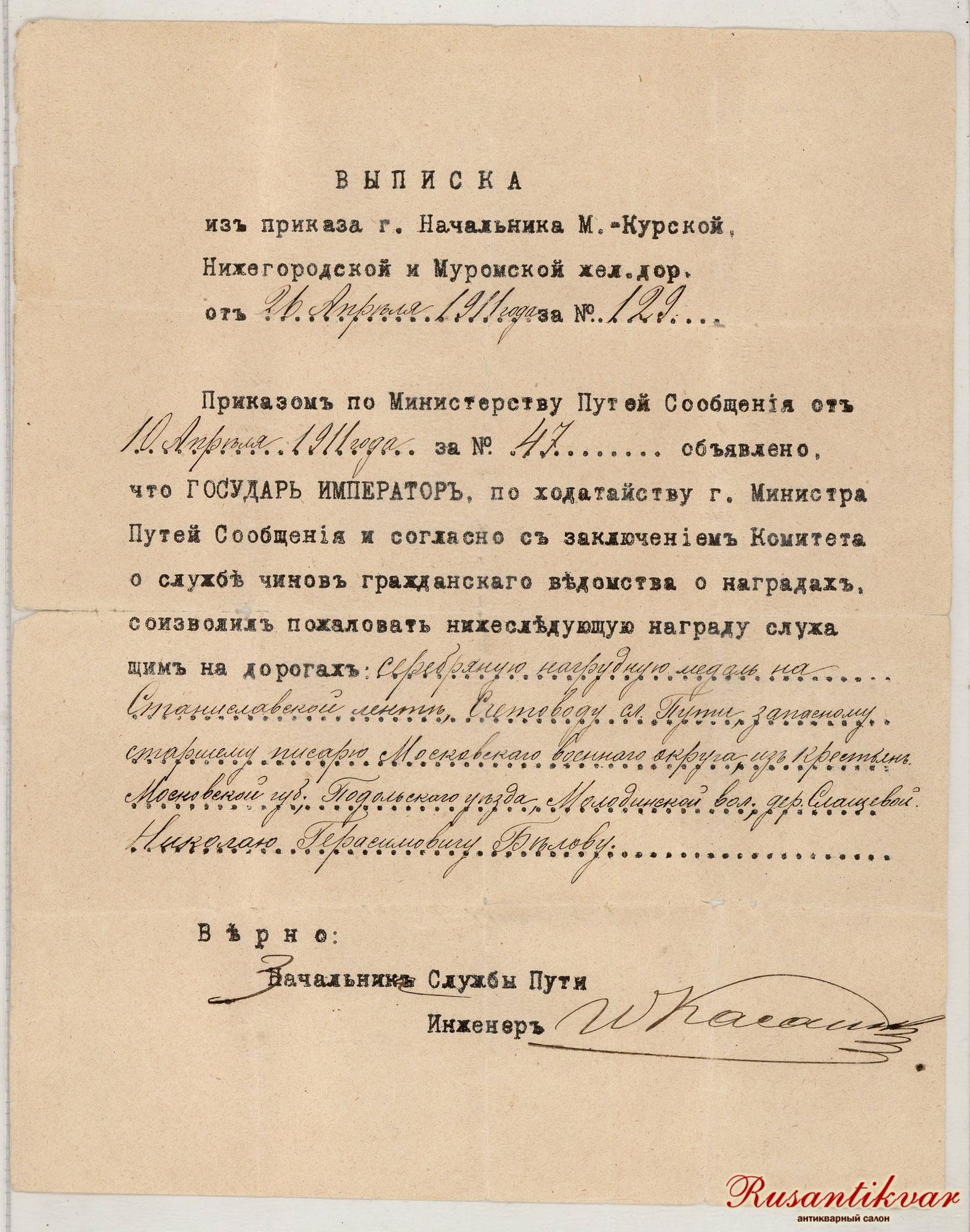 Выписка из Приказа о награждении...