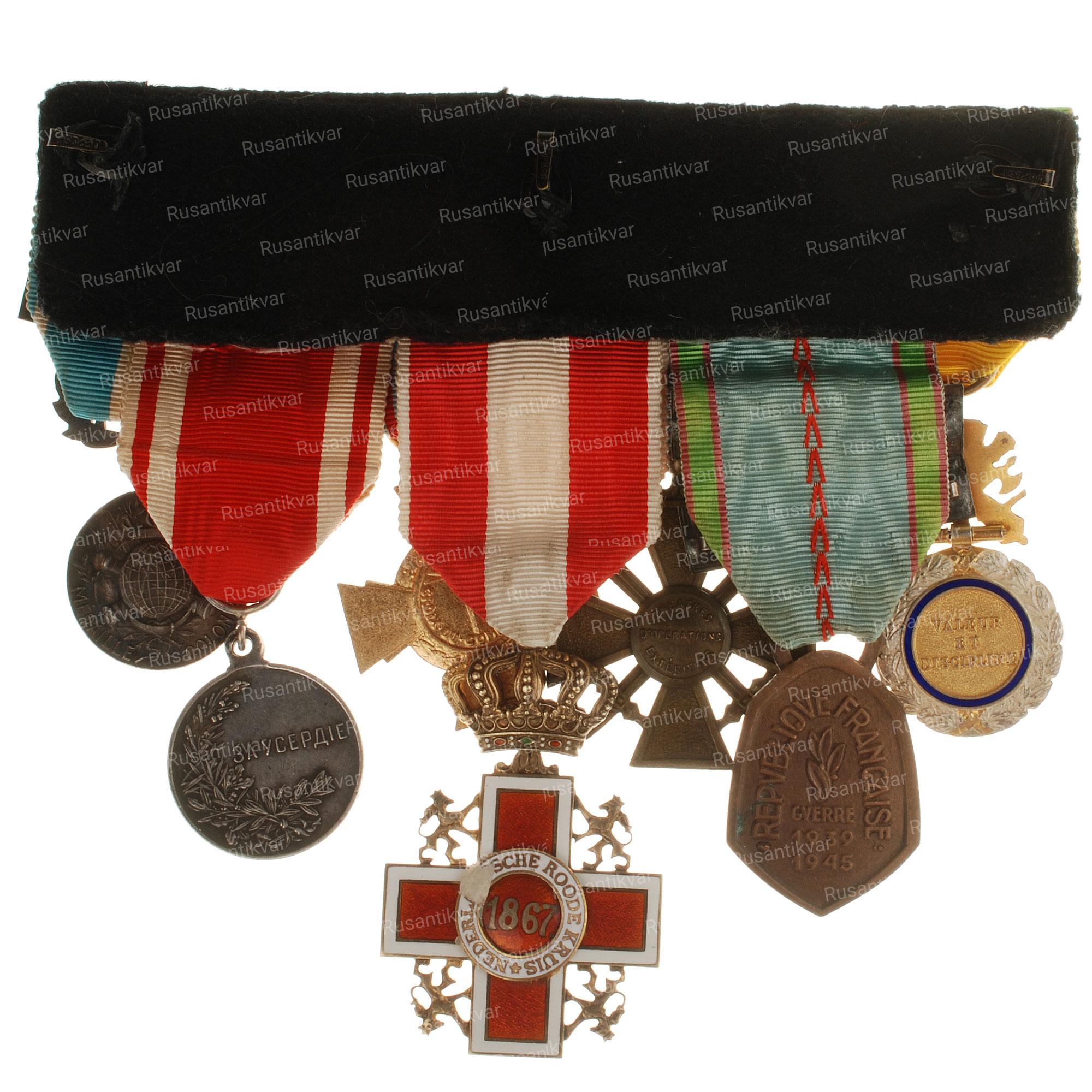 1 Мировая война. Наградная колодка сербского военного. Одна из медалей "За Усердие" с портретом Императора Николая II.