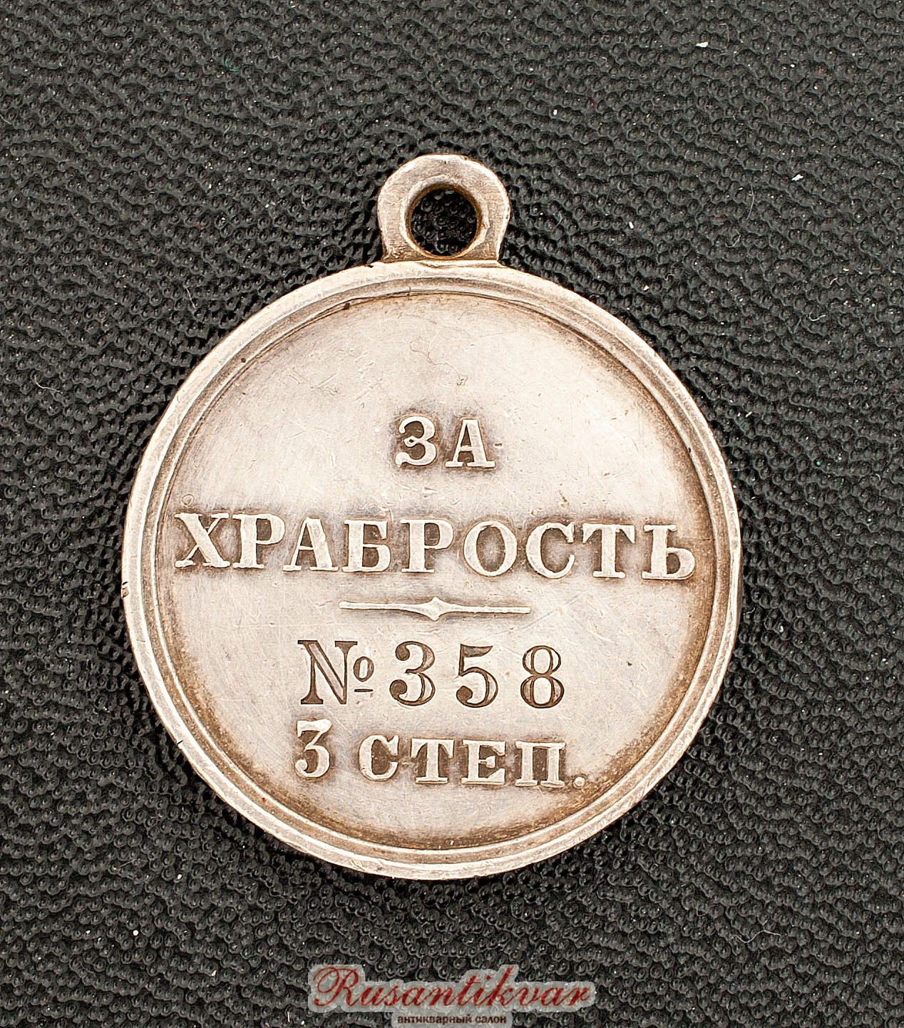 Медаль "За Храбрость" 3 степени № 358 для награждения нижних чинов пограничной стражи.