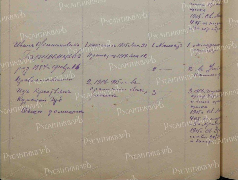 Брусенцев Иван Филиппович, из крестьян Курской губ., род. 16.02.1884 г.,
