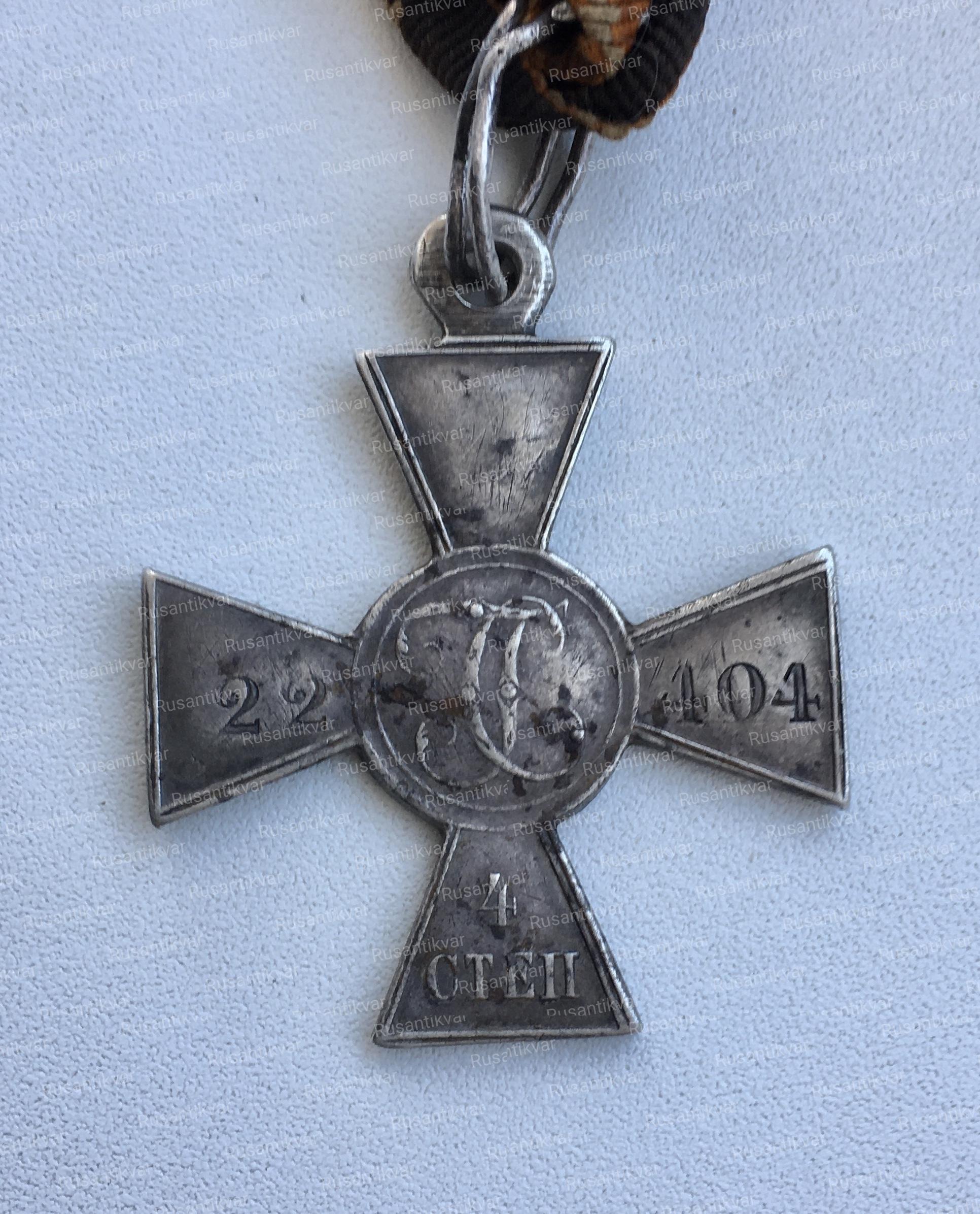 "За мужество и храбрость,проявленные в боях с 20 апреля по 7 мая,когда,будучи посыльным пр штабе дивизии,неоднократно ездил с срочными приказаниями к командиру полка,под действительным ружейным,пелеметным и артиллерийским огнем,выделяясь блистательным и доблестным выполнением своего долга.Ст.145 п.3 Георгиевского Статута.