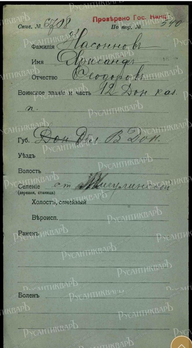 Насонов Хрисанф Федорович-12 Донской казачий полк,4-я сотня,казак.