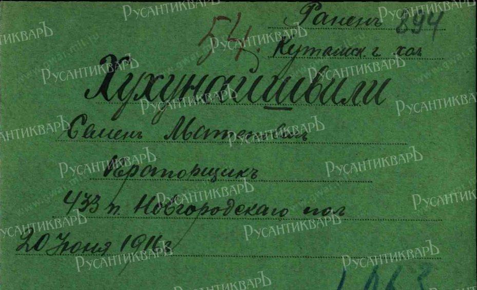 Приказ 43 армейскому корпусу от 22.07.1916 № 189 Прапорщик Джугели происхождением из дворян, а прапорщик Хухунайшвили из крестьян Кутаисской губернии, оба прибыли в полк из 92 запасного батальона, руководили партией разведчиков в ночной разведке 20 июня 1916 г.
