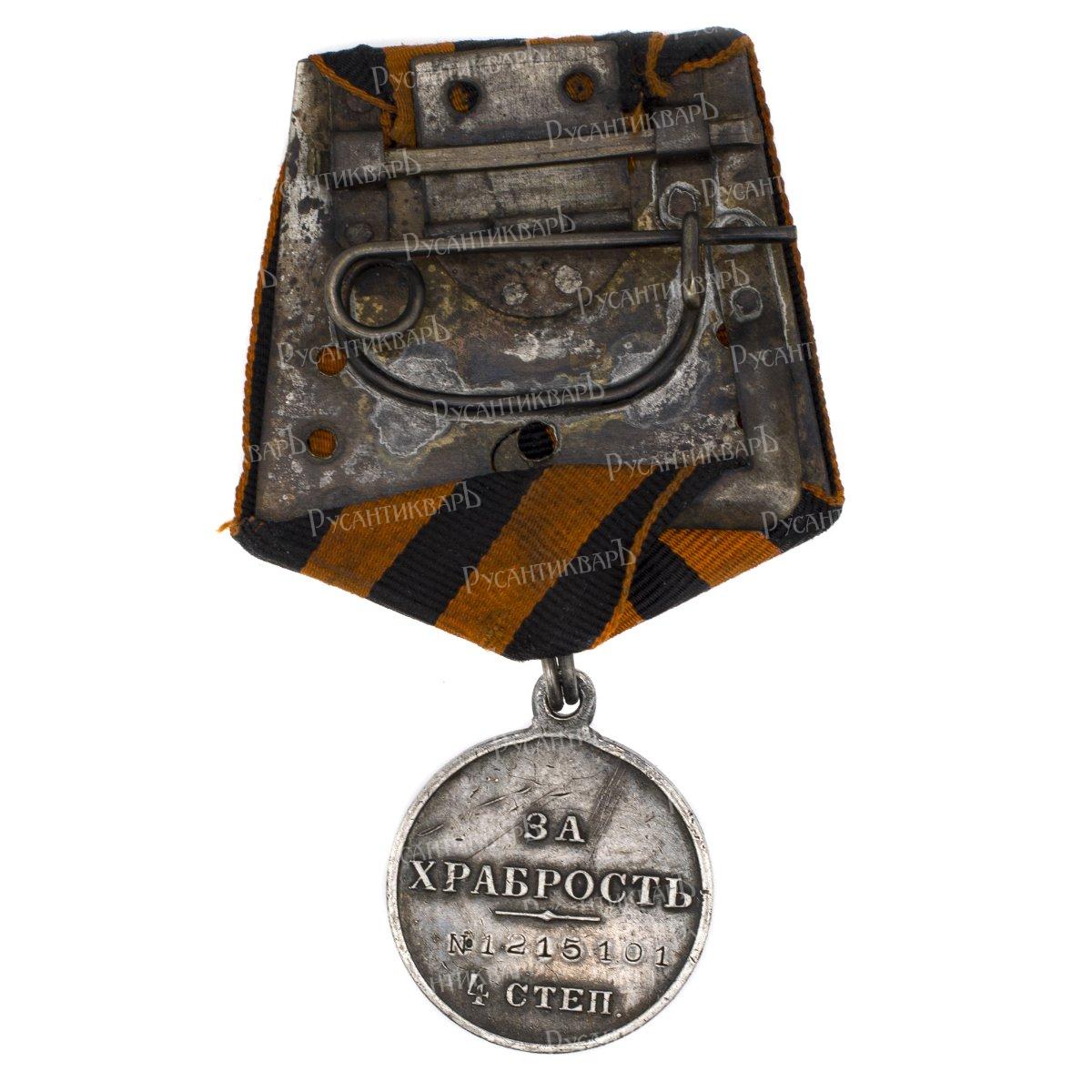Георгиевская Медаль ("За Храбрость") 4 ст №1.215.101 на наградной колодке.