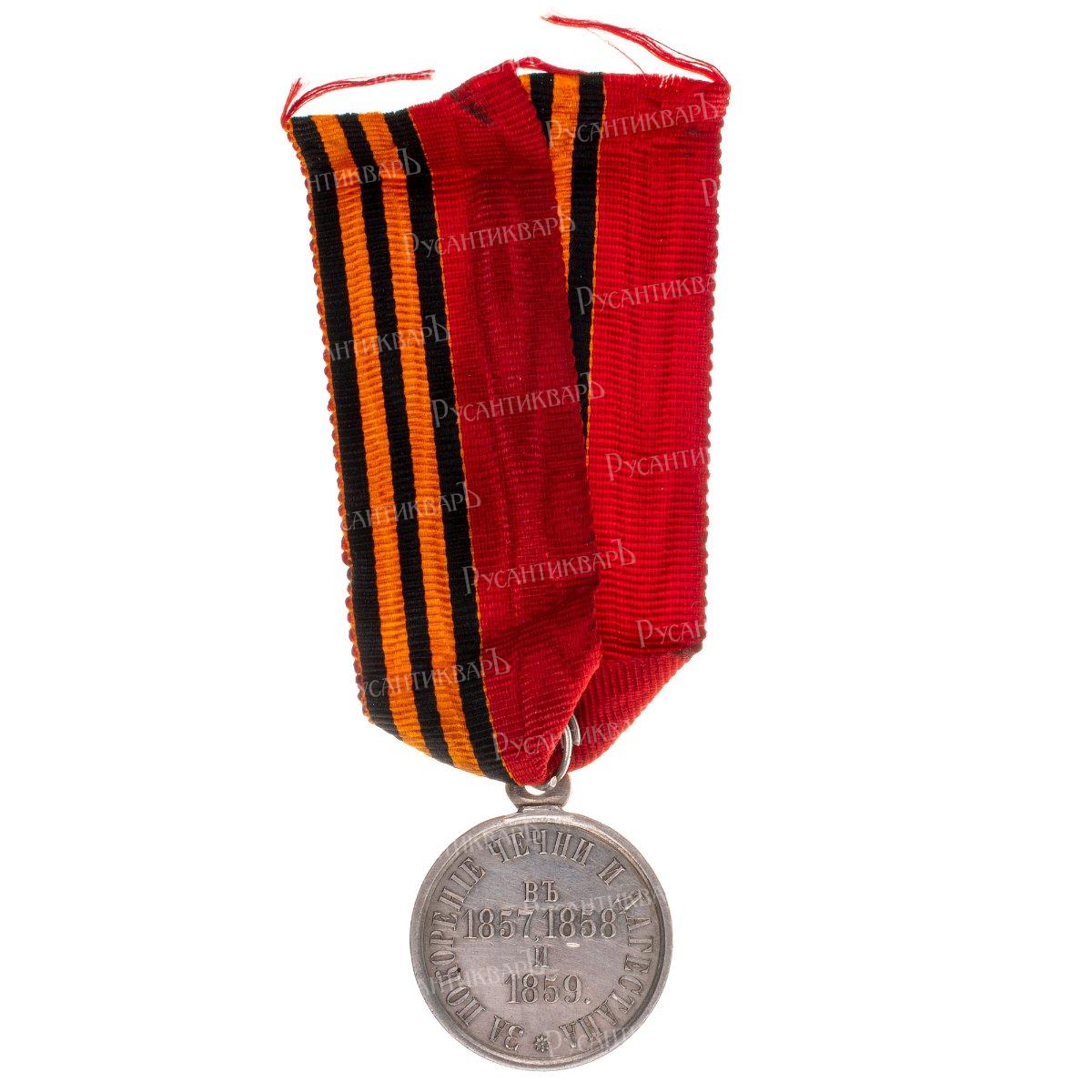 Медаль "За покорение Чечни и Дагестана" на ленте.