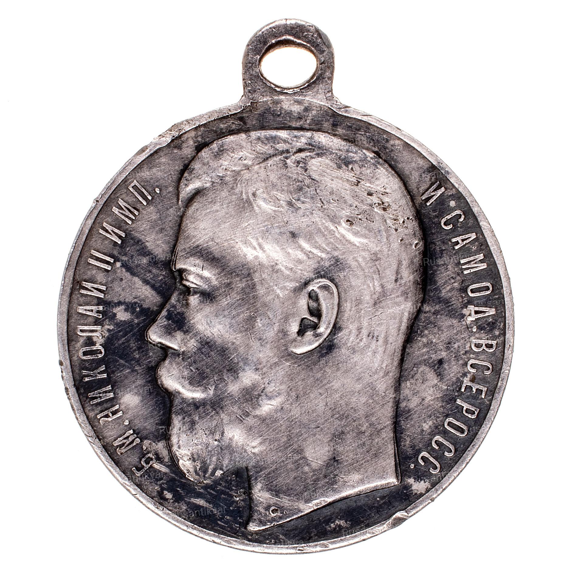 Медаль «За храбрость» с портретом Императора Николая II № 705 мастерской «Ф.Г.» (Ф. Гейльмейр, Санкт-Петербург, Демидов пер., 9).
