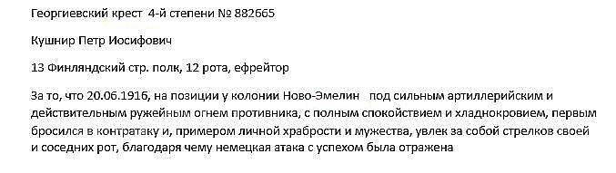 Георгиевский крест 4 степ.882.665 Кушнир Петр Иосифович