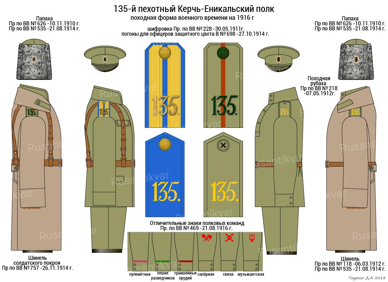 135-й Керчь-Еникольский полк находился в нашем городе до 1914 года, 20 августа 1914 года весь город провожал на фронт солдат и офицеров полка, благословив их иконой Спасителя. Известно, что в годы гражданской войны этот полк понес большие потери от махновцев, а остатки 135-го Керчь-Еникольского полка были разгромлены в Крыму в феврале 1920 года Красной Армией.
