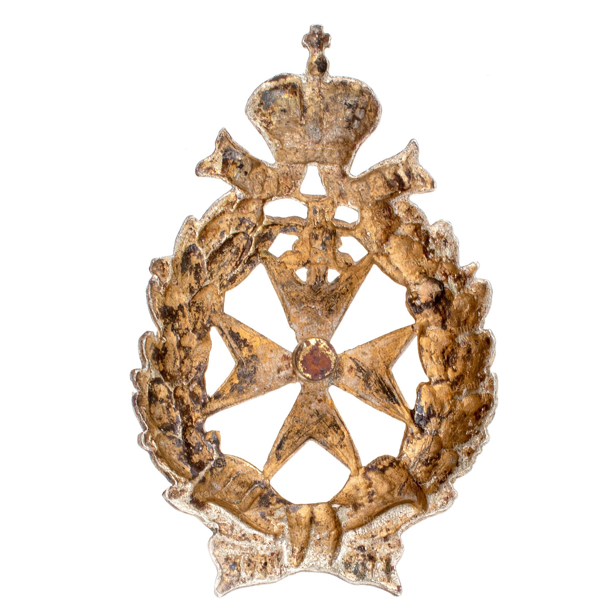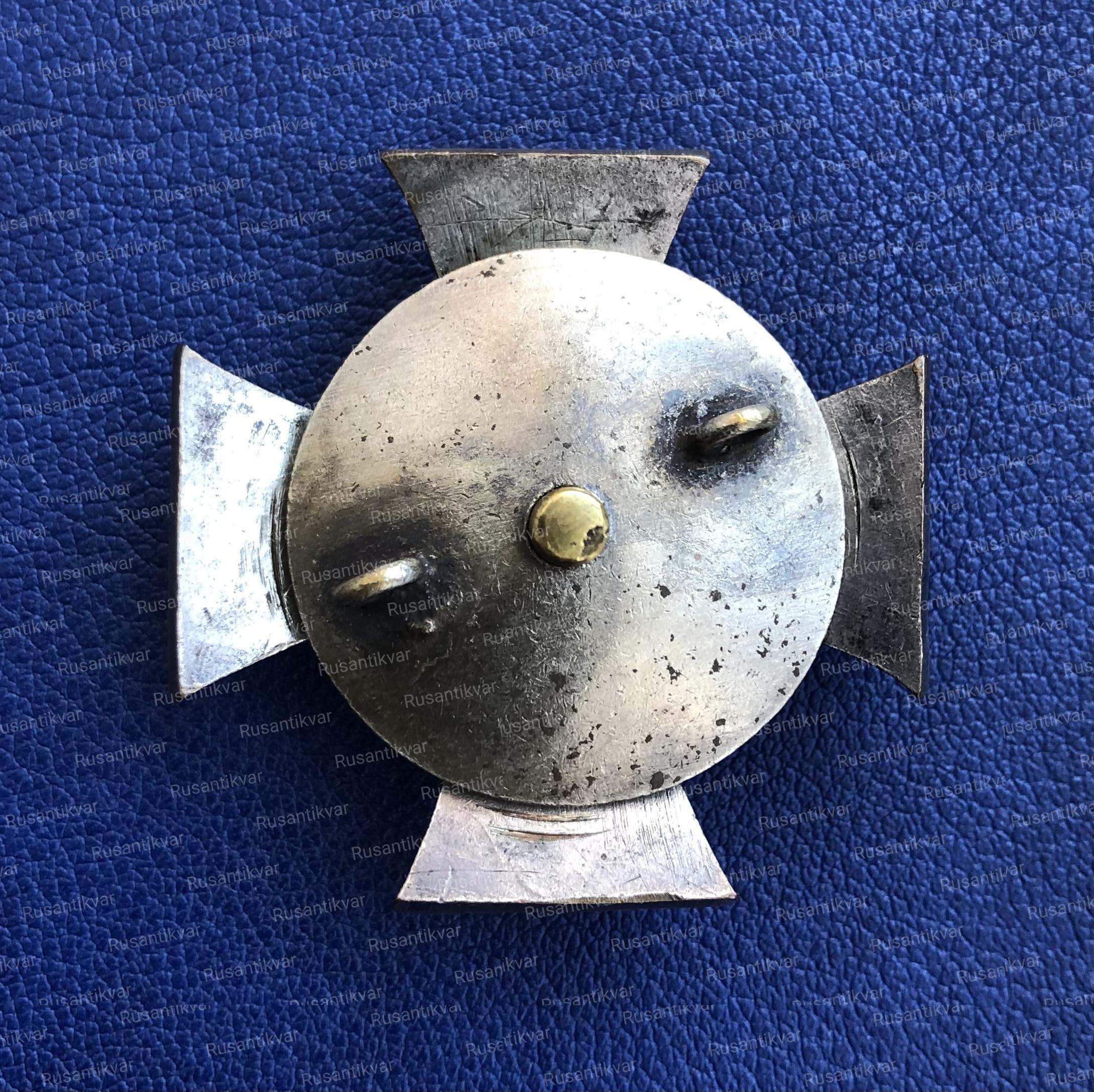 Российская Империя, 1910–1917 гг. Неизвестная мастерская. Бронза, серебрение, 22.74 гр. Размеры 41×40.7 мм. Сохранность очень хорошая. Утвержден 22 августа 1910 г. Редкий.