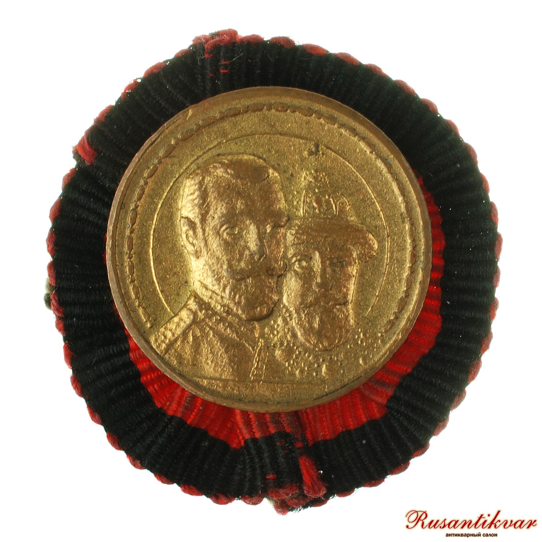 Фрачная медаль "В память 300-лет царствования дома Романовых" на розетке из ленты ордена Св. Владимира.