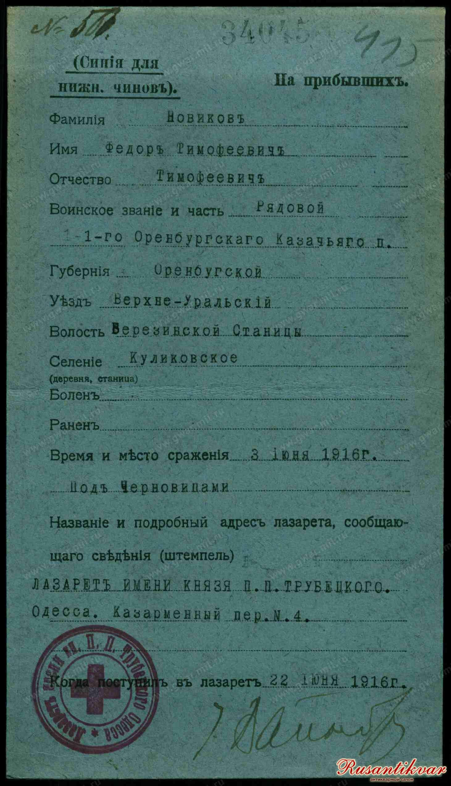 Новиков Федор (Станица Березинская)-1-й Оренбургский казачий полк.