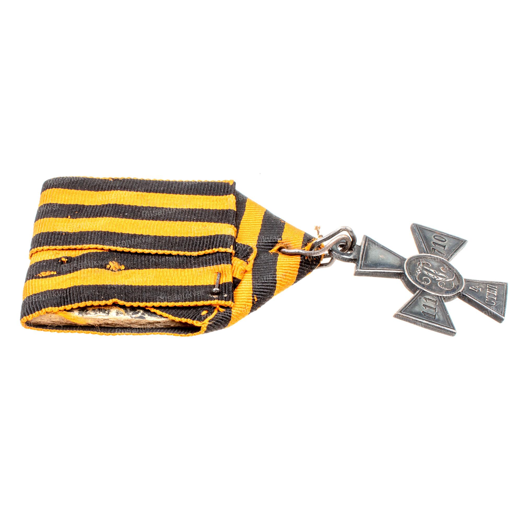 Знак отличия военного ордена 4 ст. №128.329 Награждён Шнейдер Томас - 9-й пехотный Ингерманландский полк, рядовой . За мужество и храбрость , оказанные им разновремённо в боях против японцев .