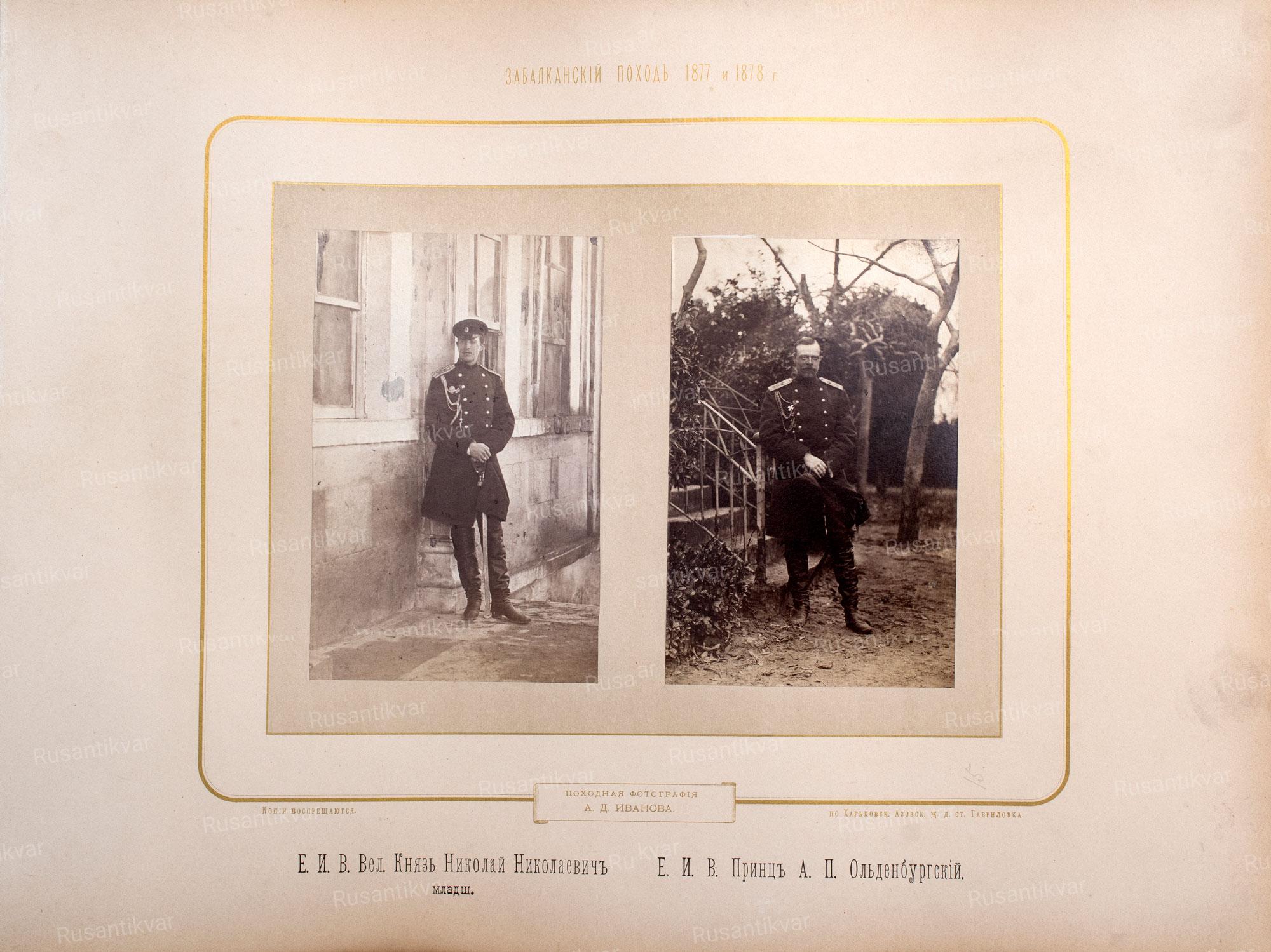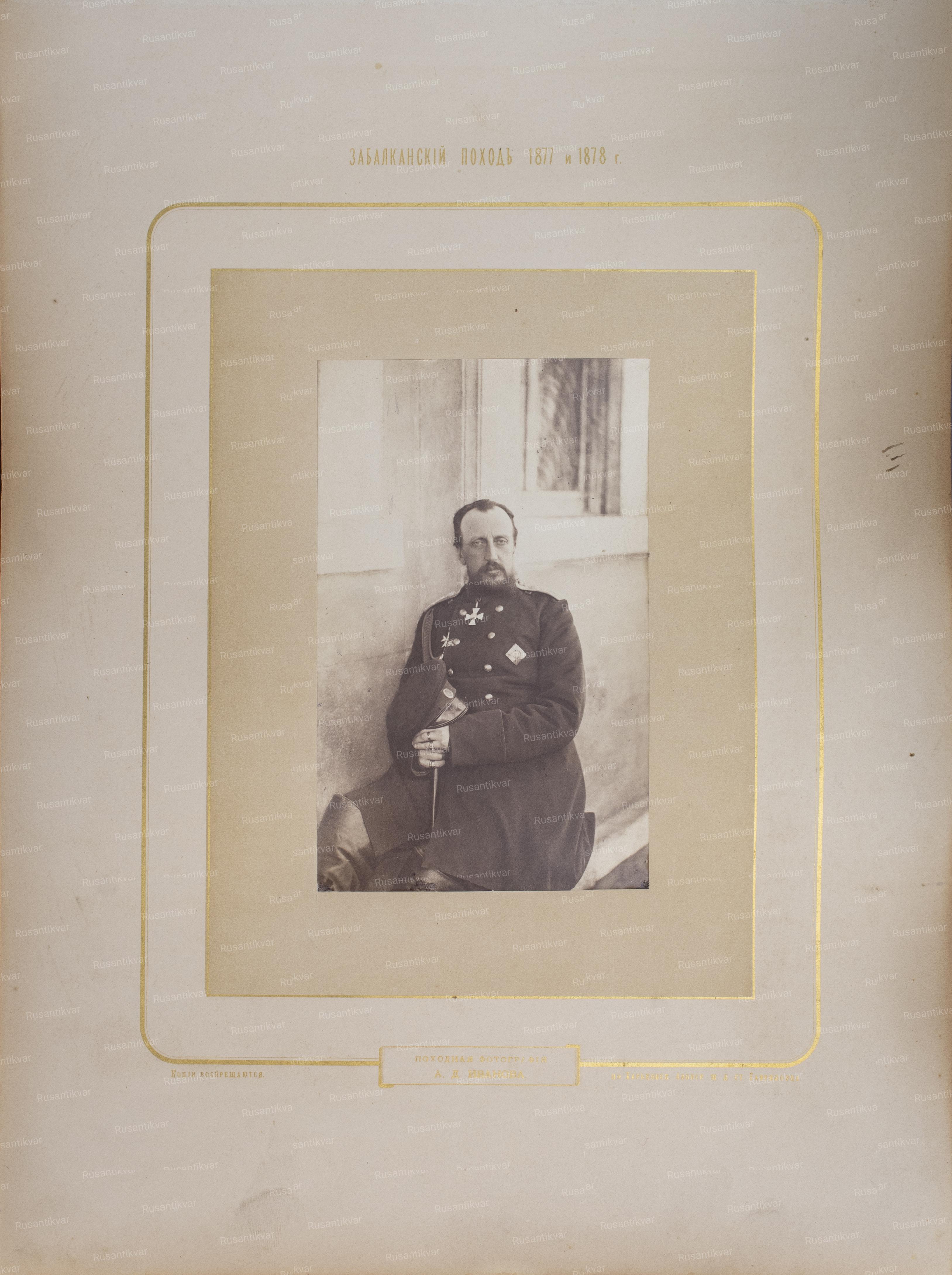 Николай Николаевич (Старший) (27.VII.1831 - 13.IV.1891) - русский великий князь, третий сын императора Николая I, генерал-адъютант (1856), генерал-фельдмаршал (1878). Получил военное воспитание. Начал службу в 1851 году в лейб-гвардии Конном полку, с 1852 года командовал бригадой гвардейской кавалерии. В 1852 году (фактически с 1856 года) – 1891 год - генерал-инспектор по инженерной части. С 1855 года - член Государственного совета. Одновременно с 1856 года - начальник гвардейской кавалерийской дивизии, с 1859 года - командир гвардейского резервного кавалерийского корпуса, с 1861 года - командир отдельного гвардейского корпуса. В 1864-1880 годы - командующий войсками гвардии и Петербургского военного округа и одновременно в 1864-1891 годы - генерал-инспектор кавалерии. Во время русско-турецкой войны 1877-1878 годов - главнокомандующий Дунайской армией. Был весьма ограниченным человеком. Способностями военачальника не обладал и его влияние на ход военных действий было главным образом отрицательным (в частности, при неудачах под Плевной). После 1880 года, будучи больным, активного участия в военном управлении не принимал.