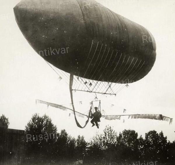 На фотографиях представлены испытания оригинального летательного аппарата конструкции приват-доцента Харьковского университета К.Я. Данилевского - летательного снаряда, построенного на деньги А. Пильстрема. Уникальные документы по истории зарождения воздухоплавания в России.