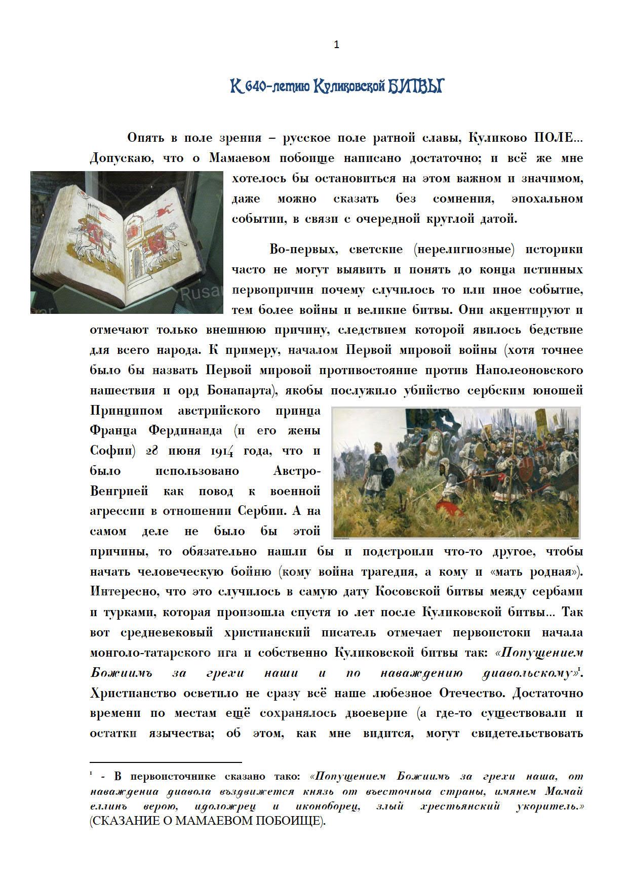 К 640-летию Куликовской БИТВЫ