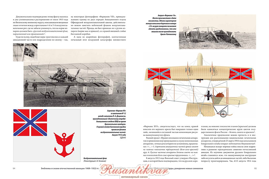 В книге приведён каталог отличий многих авиационных частей периода Первой мировой войны. Не забыты также личные эмблемы и талисманы русских авиаторов. Рассказано и о торговых марках и знаках авиационных предприятий России.