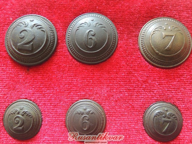 Большие и малые пуговици нижних чинов 2, 6 и 7го драгунских полков. из моей коллекции.