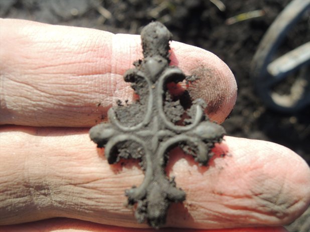 А у меня под вечер по мимо 8 чешуек вылетил шикарный оловянистой бронзы крестик домонгольчик!!!