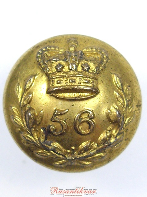 Пуговица с мундира офицера 56-го пехотного полка, 1830-1855 (большая, золочение)