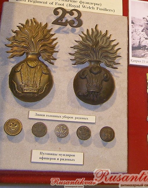 Стенд с предметами 23-го Королевских Уэльских фузилеров полка из коллекции музея Шереметьевых .