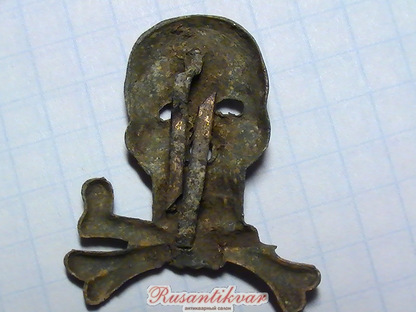 Пополнение из Крыма, р-он Красноперекопска, еще один вариант Корниловской кокарды, череп в венке, перекрещенные мечи и маленькие скрещенные кости, не частое исполнение!