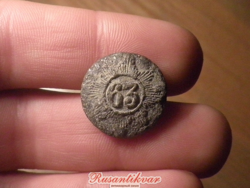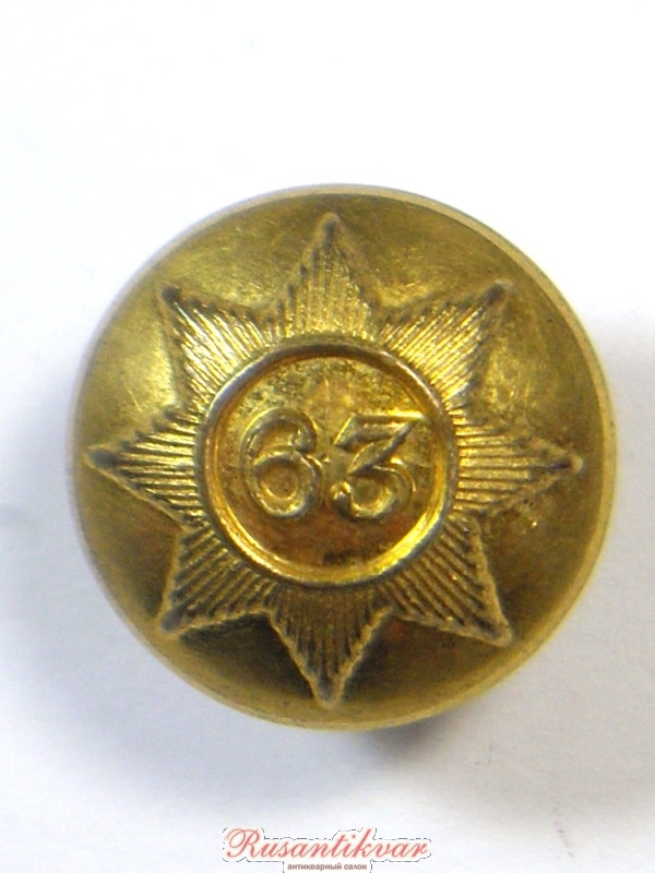 Пуговица офицера 63-го пехотного полка, 1830-1855, малая (14 мм)