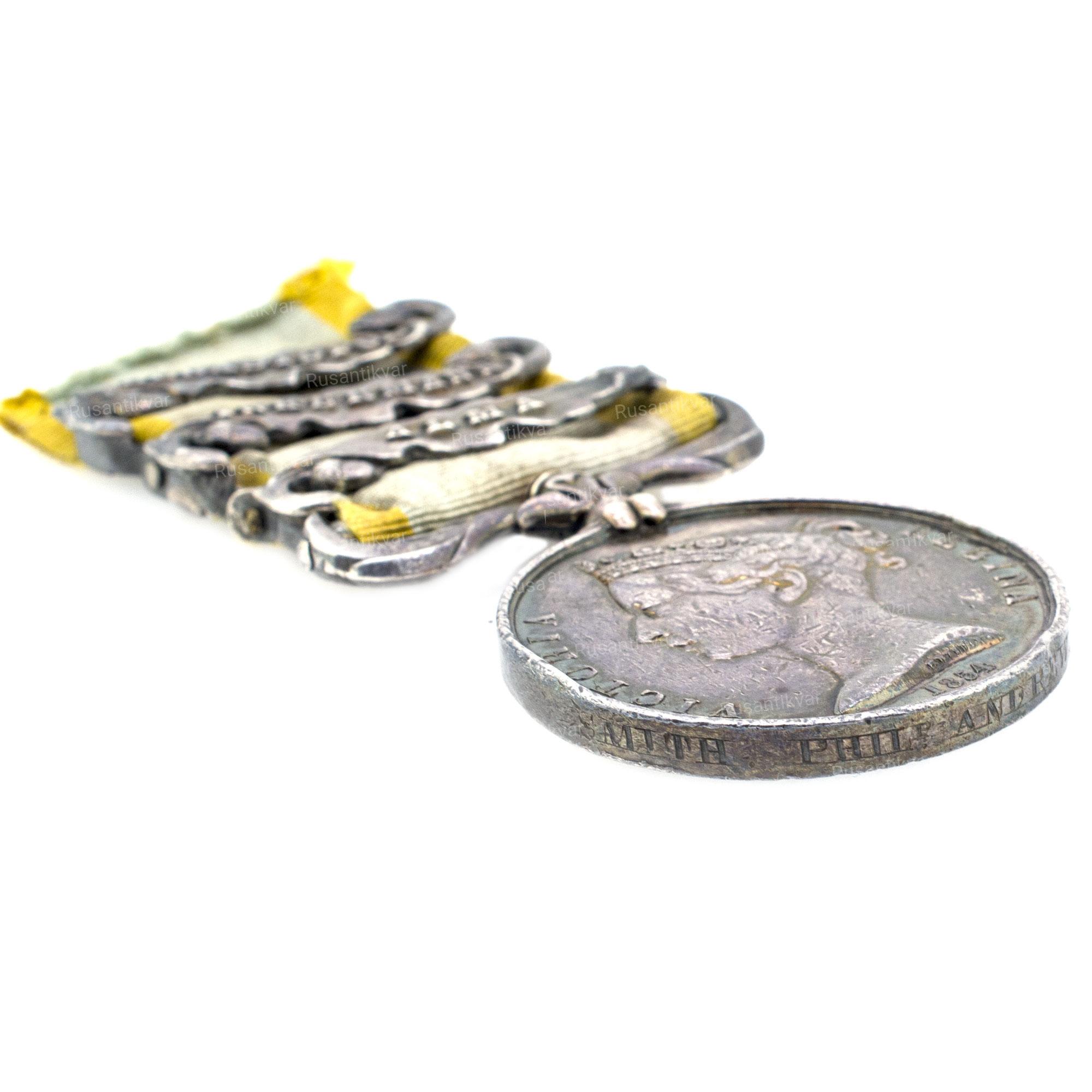 Медалью награждались все участники войны не только британской армии, но и многие чины союзных Англии войск - французы, турки, сардинцы. Пряжки ( в виде дубовых листьев) выдавались к лентам медалей только участникам отдельных сражений и экспедиций: "ALMA", "INKERMAN", "BALAKLAVA", "SEBASTOPOL" и "AZOFF". После вручения награды, её владелец мог самостоятельно сдать медаль на Королевский монетный двор для нанесения на её гурт своего имени, звания, номера (или наименования) подразделения.
