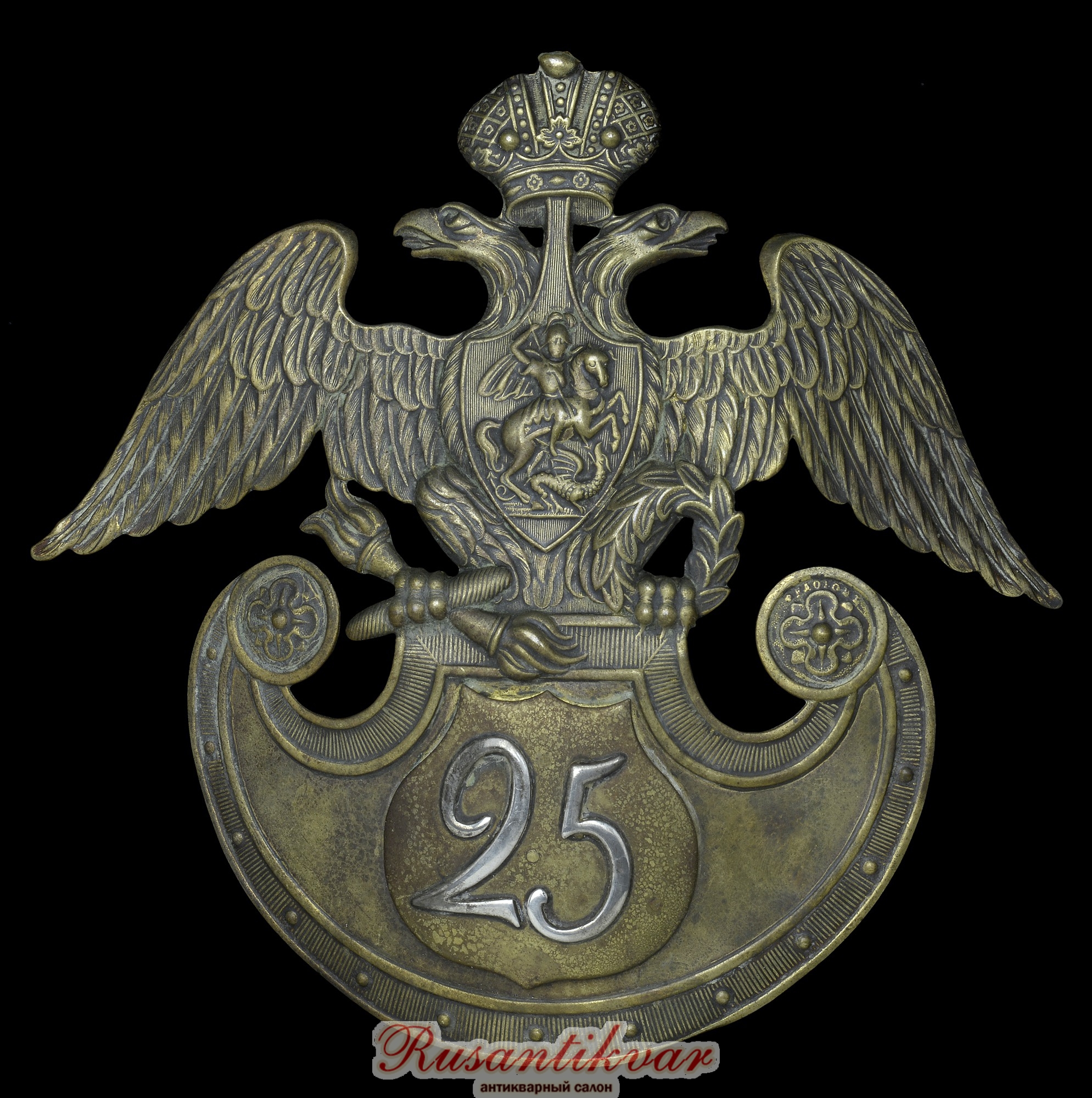 Герб на каску образца 1844 г., нижний чин 25-го пехотного или 25-го егерского полка