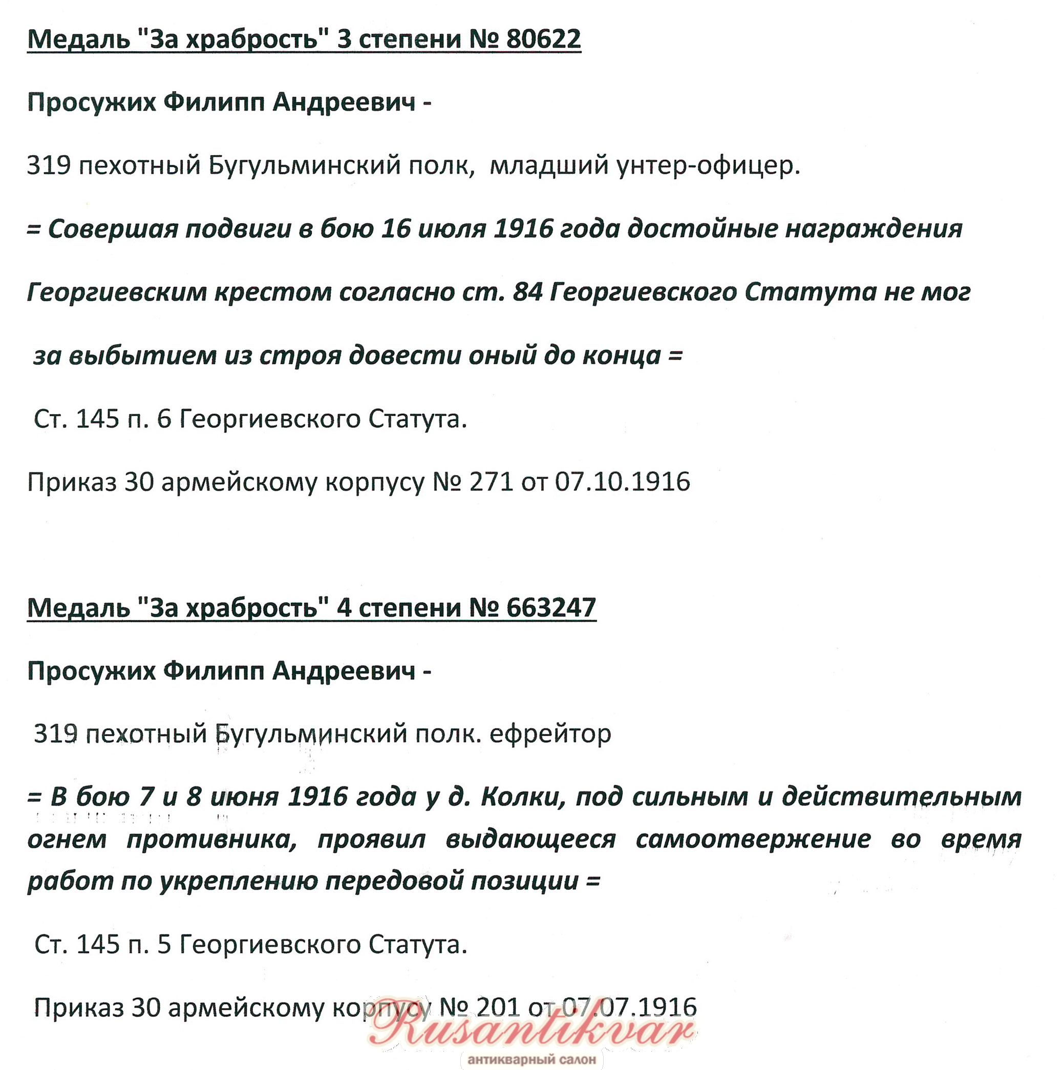 Колодка младшего унтер-офицера 319 пехотного Бугульминского полка Просужих Филиппа Андреевича