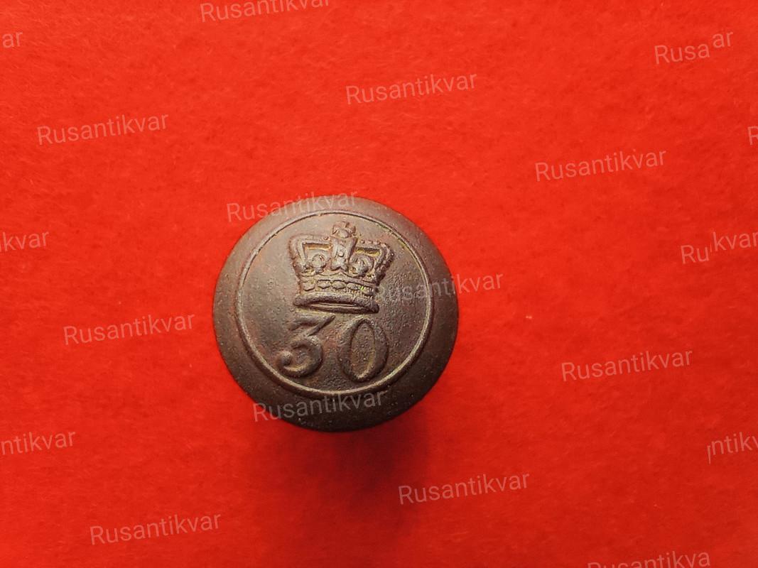 Пуговица с мундира офицера 30-го пехотного полка, 1830-55 (большая)