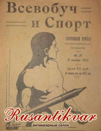 Первые советские спортивные значки появились уже в 1919 г. Таким первенцем был значок участника спортивного праздника Всевобуча, состоявшегося 25 мая 1919 г. в Москве на Красной площади. Выглядит он так: фигурный щит, обрамленный внизу двумя ветвями лавровых листьев. По краям значка лента с надписью: «Спортивный праздник Всевобуча 25 мая 1919». В центре накладная фигура атлета. В верхней части пятиконечная звездочка. Значок серебряный. Звездочка покрыта красной краской. Это первый советский спортивный значок. Один из них был вручен В. И. Ленину, принимавшему участие в празднике Всевобуча.