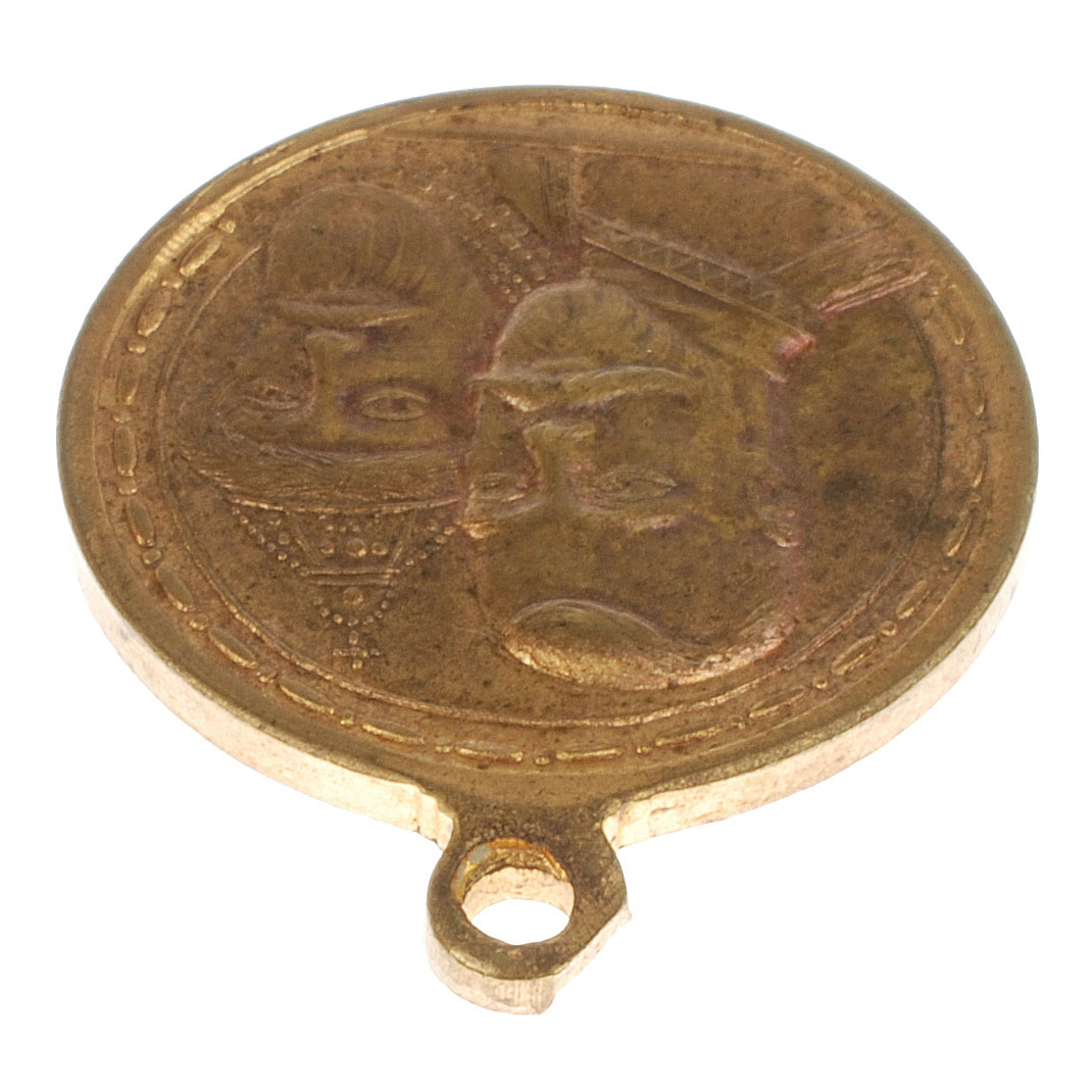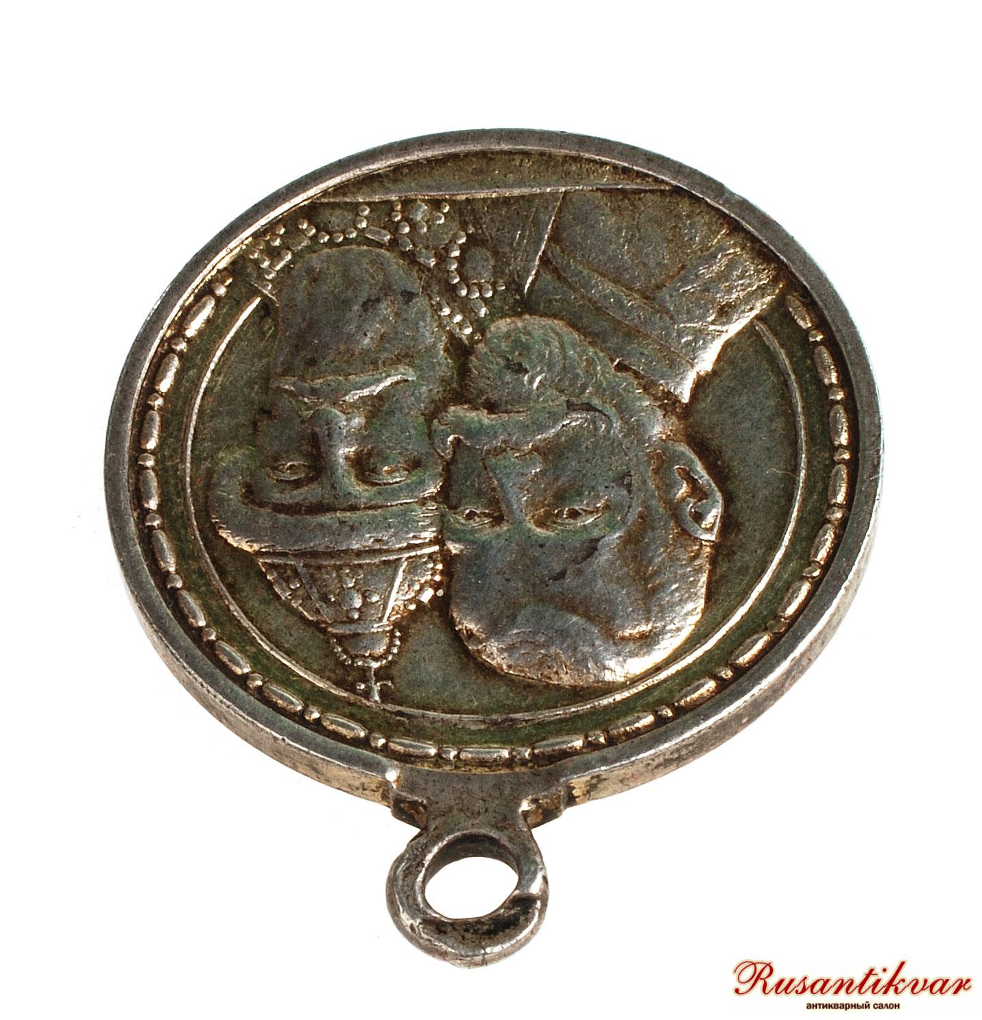 Вензель на погоне Императора Николая II прописная «а». Крест на шапке Михаила не касается сплошной линии. Пунктирная линия на аверсе начинается с пунктира им же и заканчивается. Медаль без позолоты, медная, что бывало нечасто.